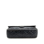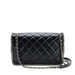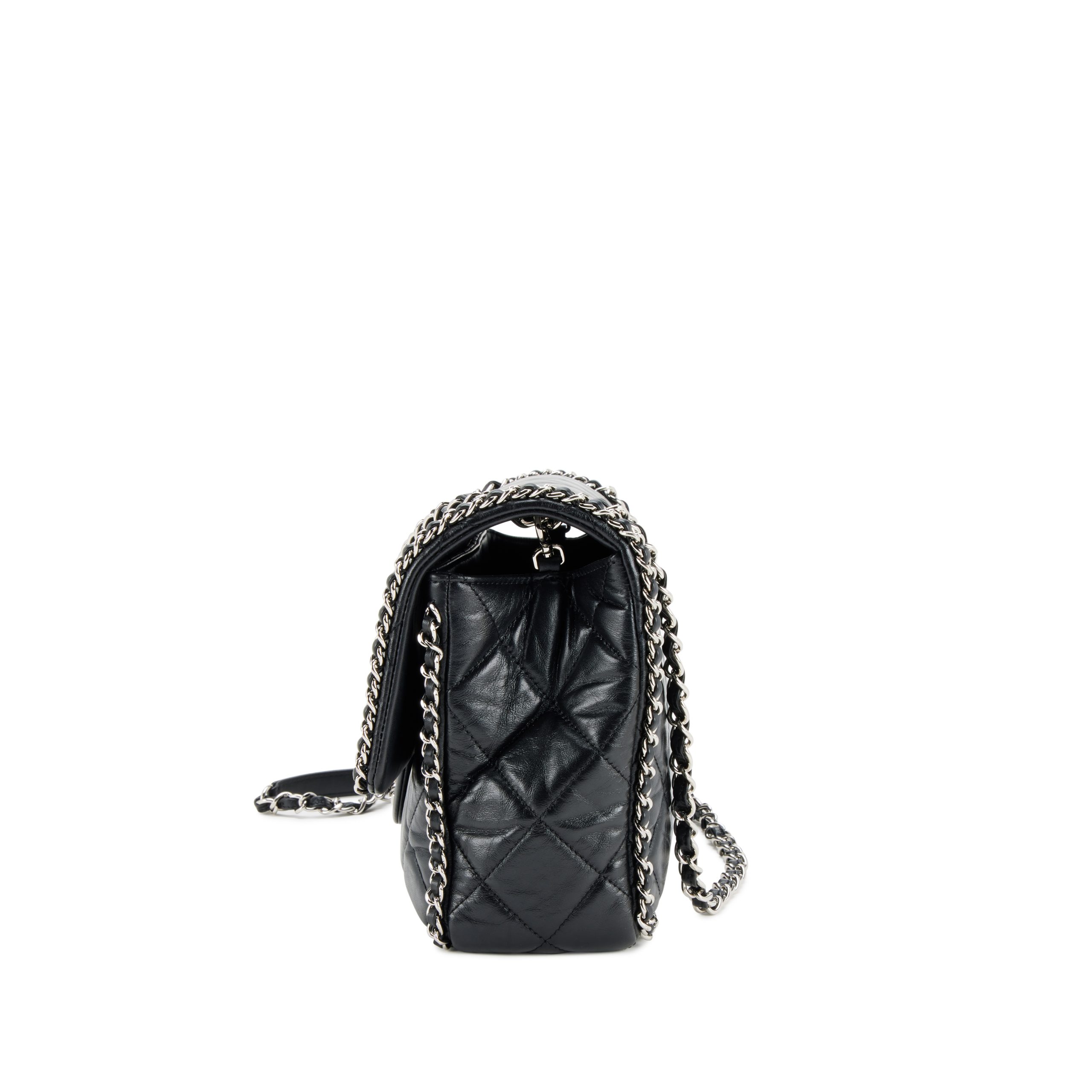 Black Quilted Crumpled Calfskin Medium Running Chain Around Flap Bag Silver Hardware, 2020