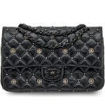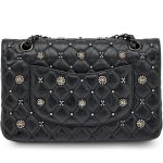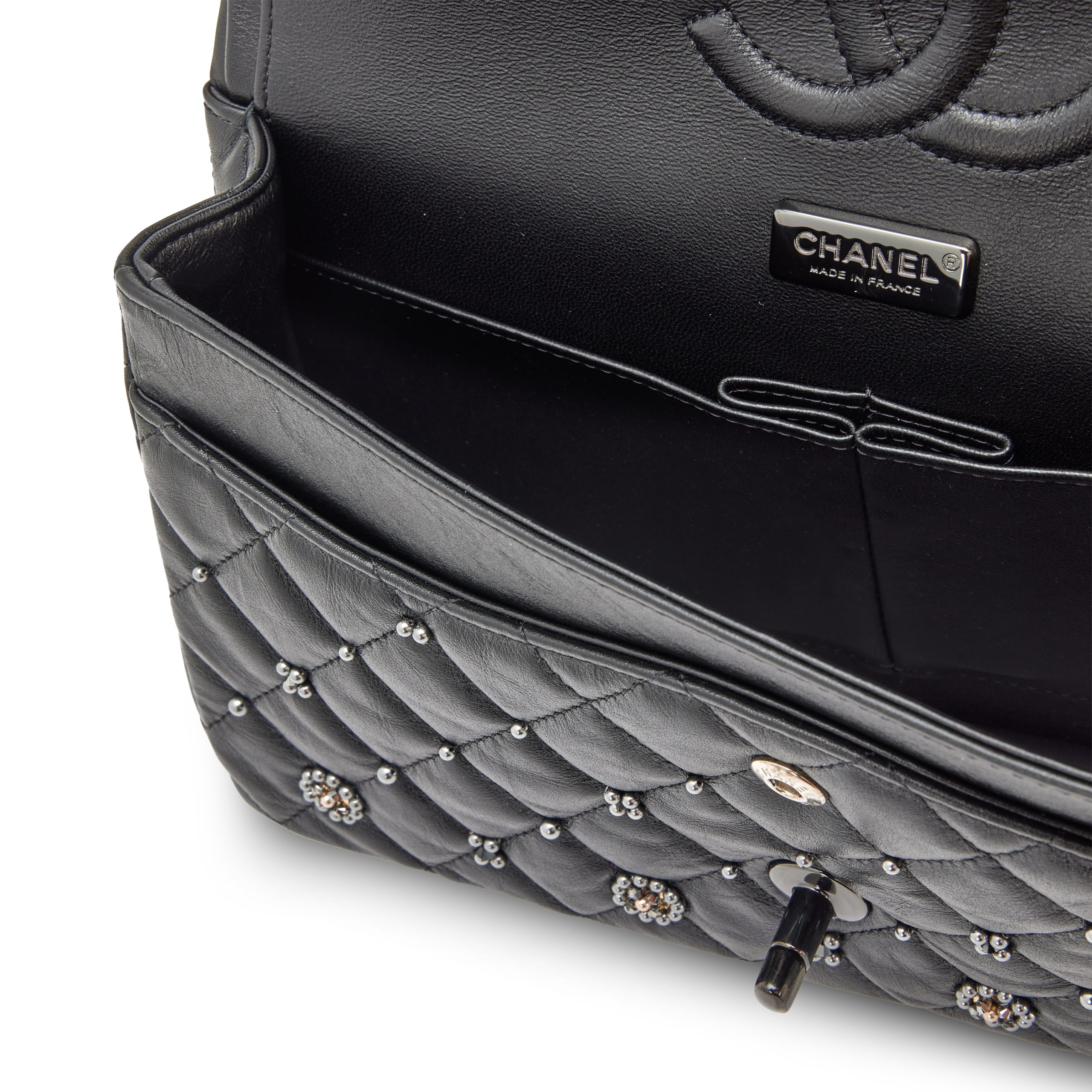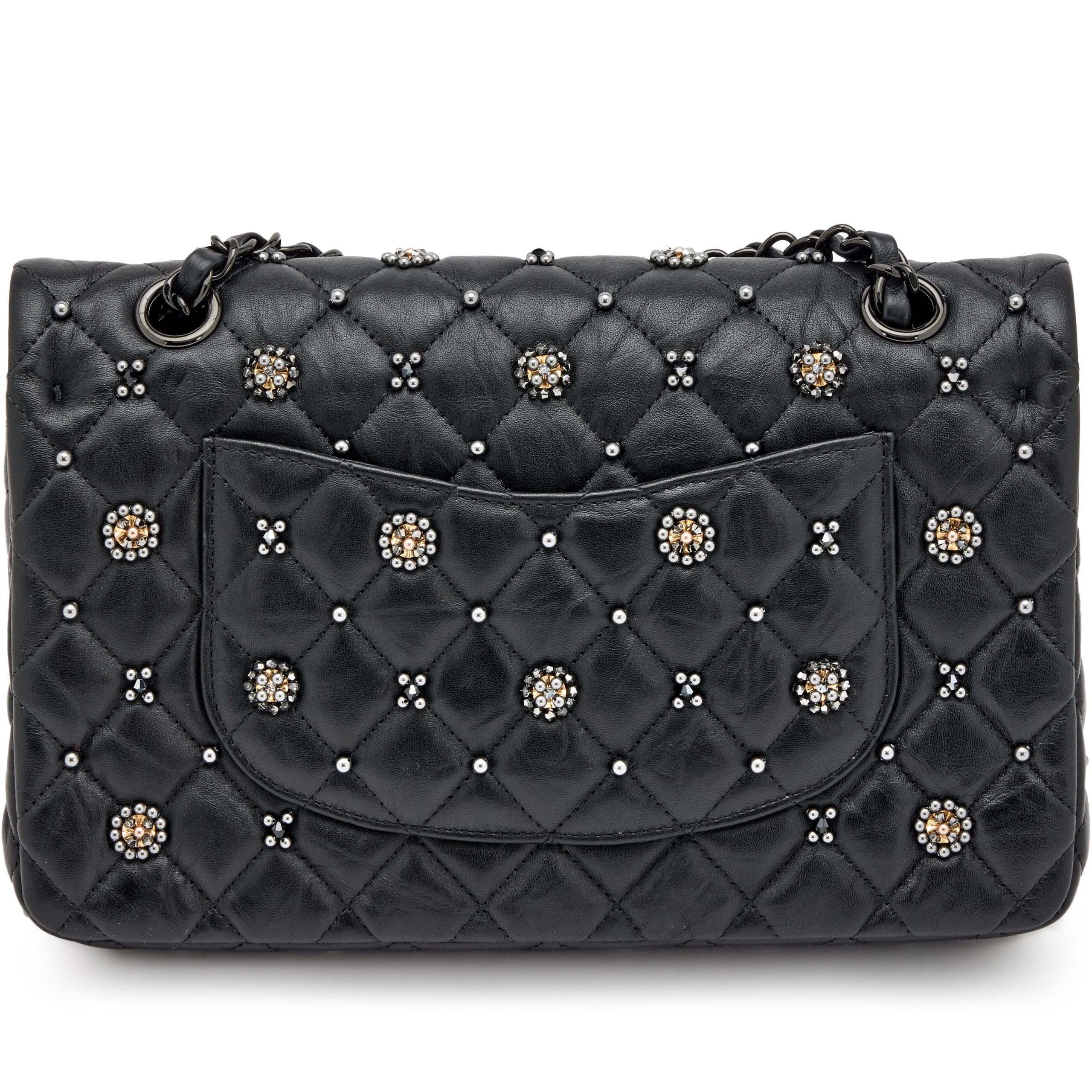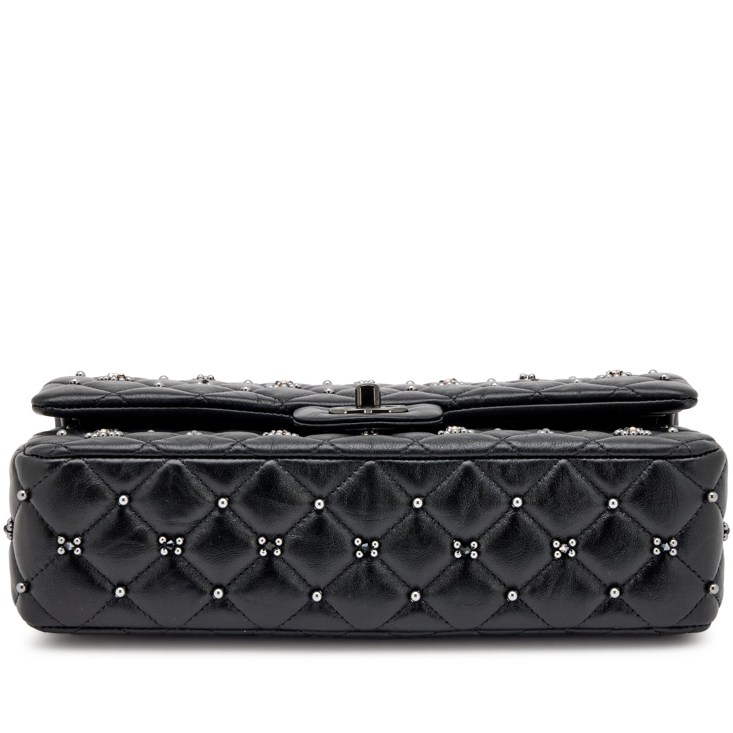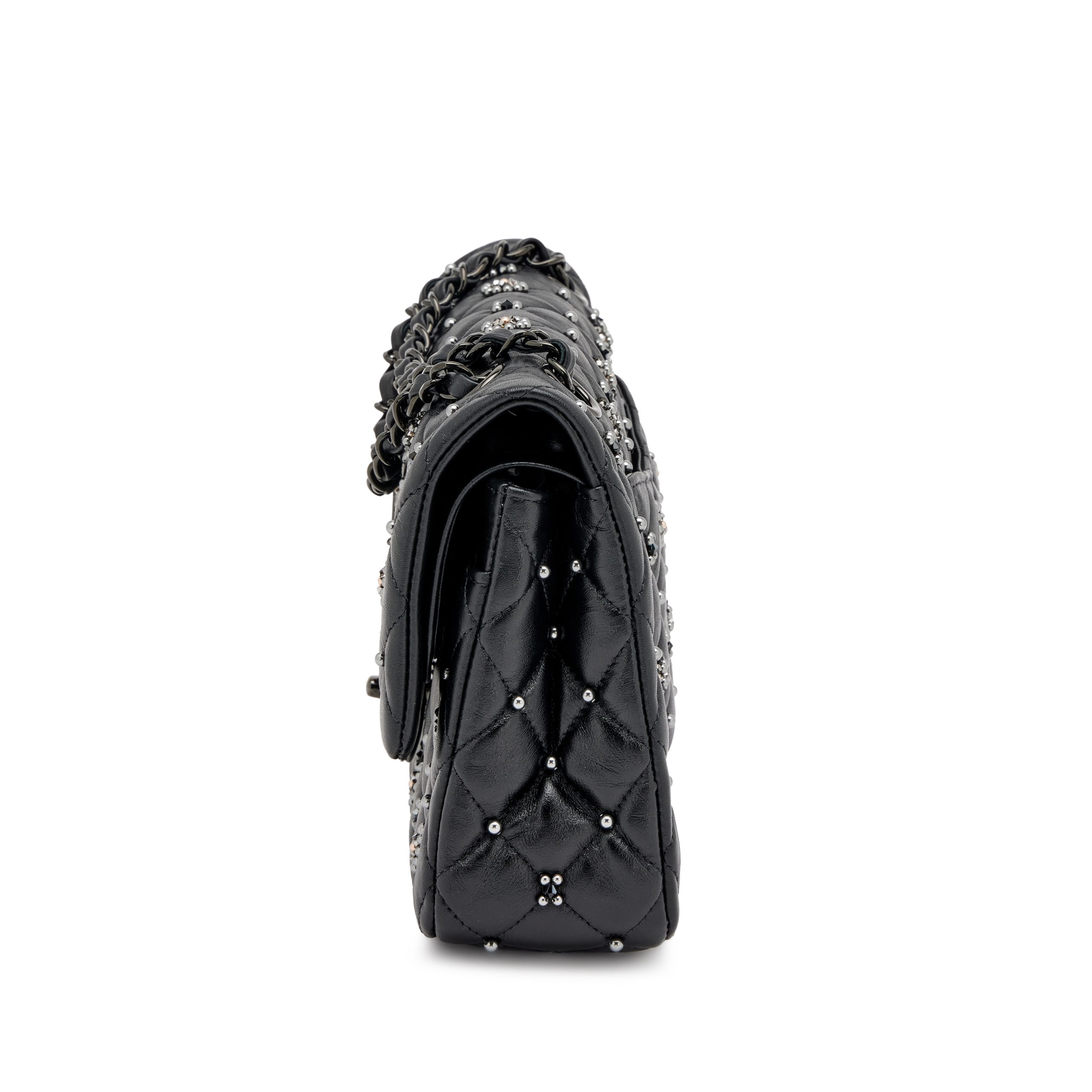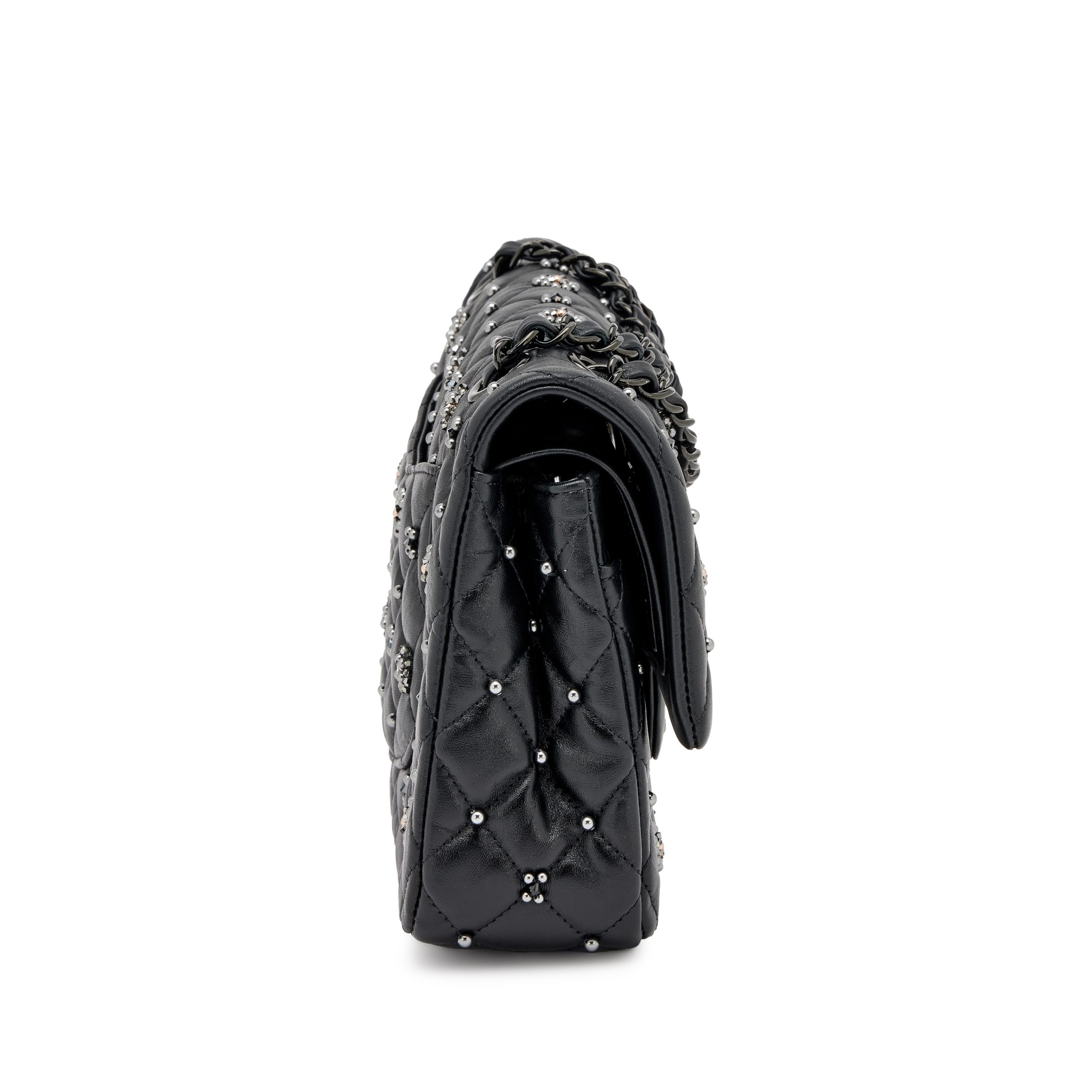 Chanel Black Quilted Crumpled Calfsksin Bejewelled Beaded Embellished Medium Classic Double Flap Black Hardware, 2022The interior is lined in a tonal leatherIncludes care booklet, felt protector, dust bag, and boxThis item is final sale