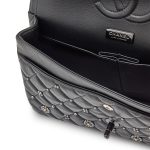 Black Quilted Crumpled Calfsksin Bejewelled Beaded Embellished Medium Classic Double Flap Black Hardware, 2022