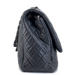 Black Quilted Grained Calfskin Airlines XXL Flap Bag Ruthenium Hardware, 2016