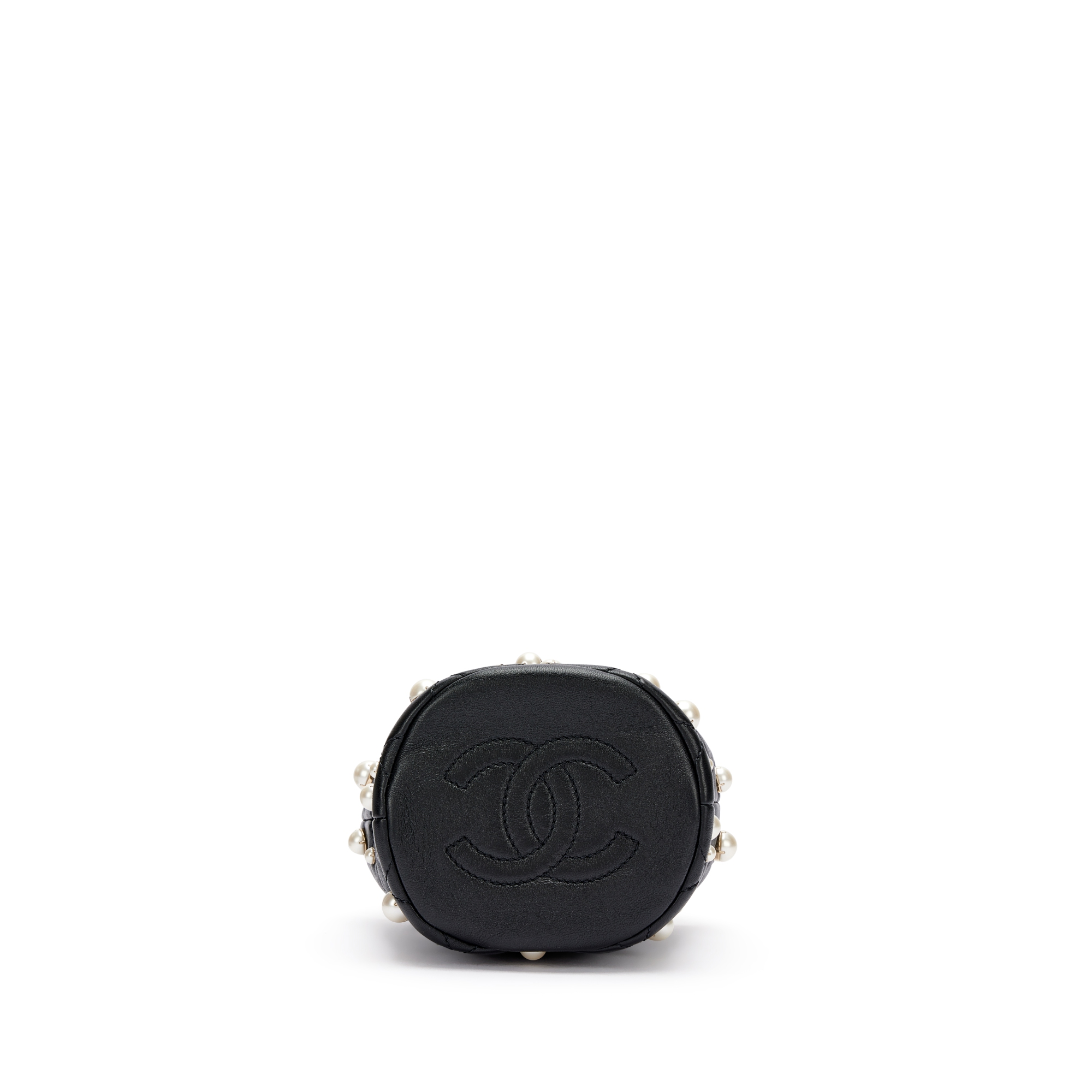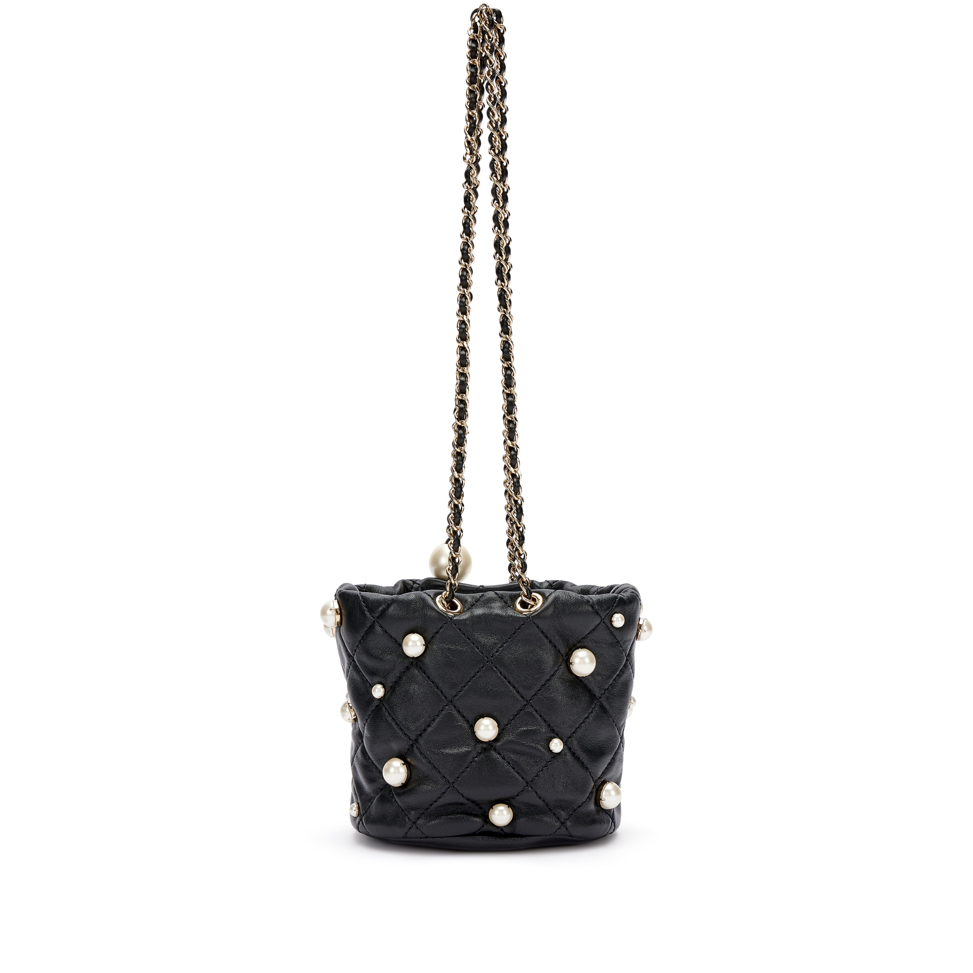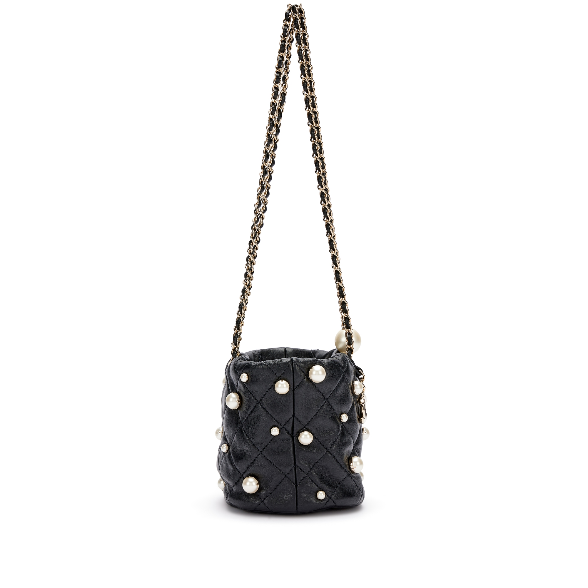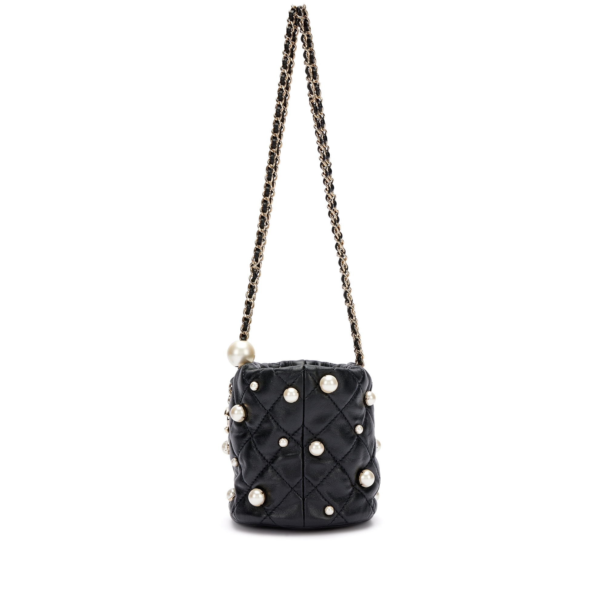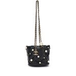 Chanel Black Quilted Lambskin Bucket Bag with Pearls Pale Gold Hardware, 2021The interior is lined with tonal textile materialIncludes authenticity card, dust bag and boxThis item is final sale