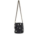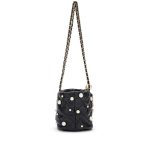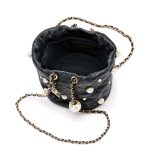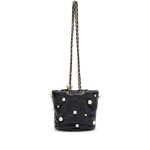 Black Quilted Lambskin Bucket Bag with Pearls Pale Gold Hardware, 2021