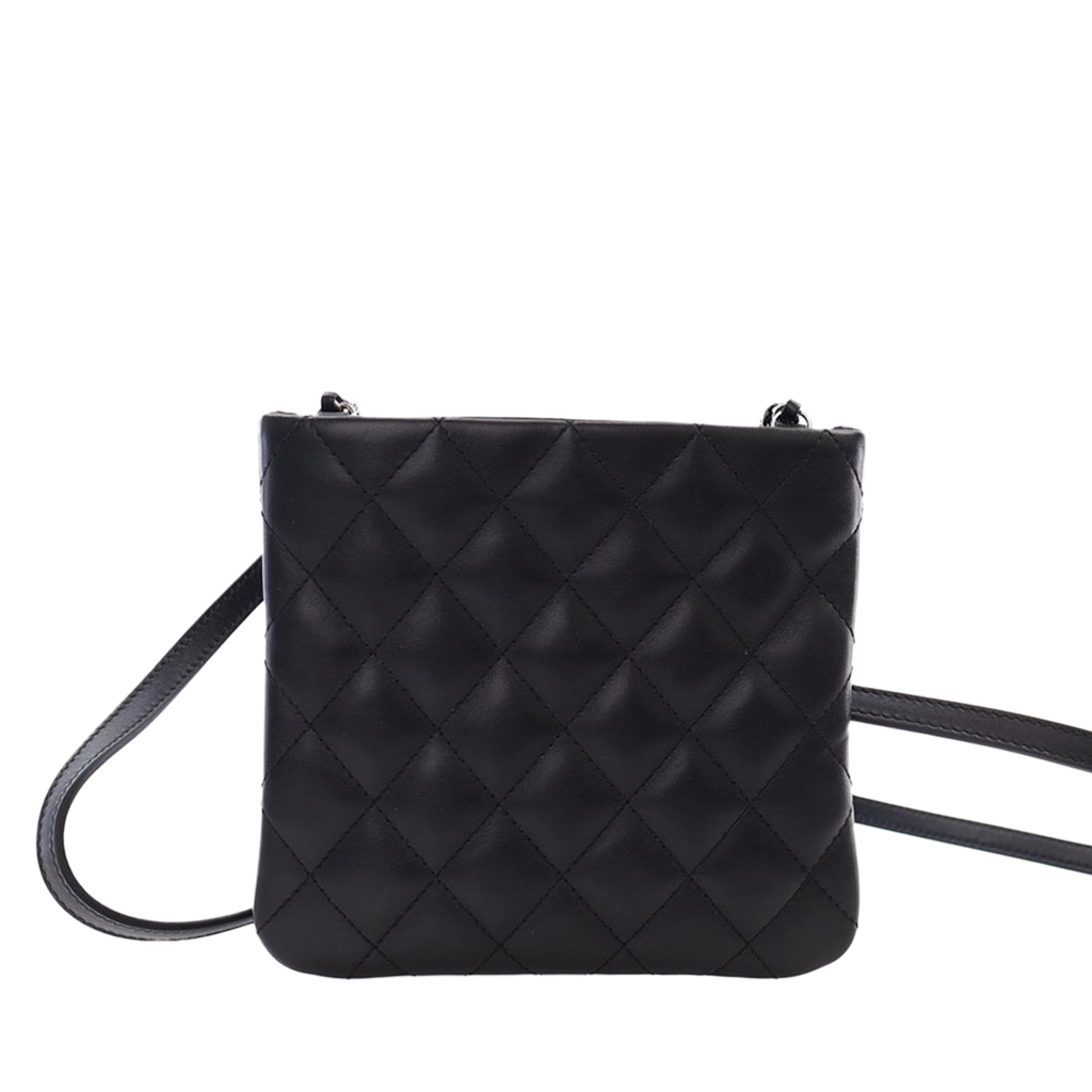 Black Quilted Lambskin Crossbody Bag Silver Hardware, 2020