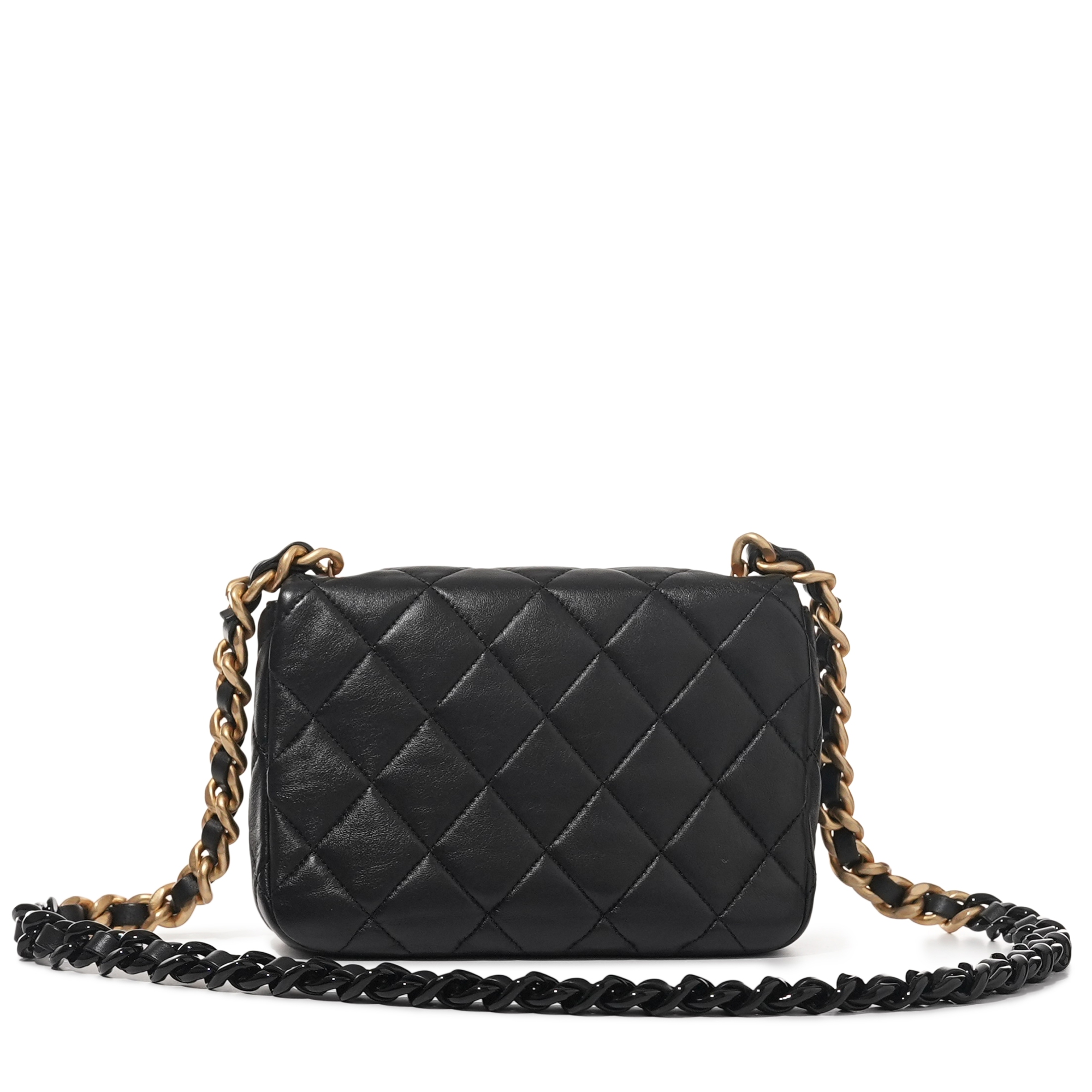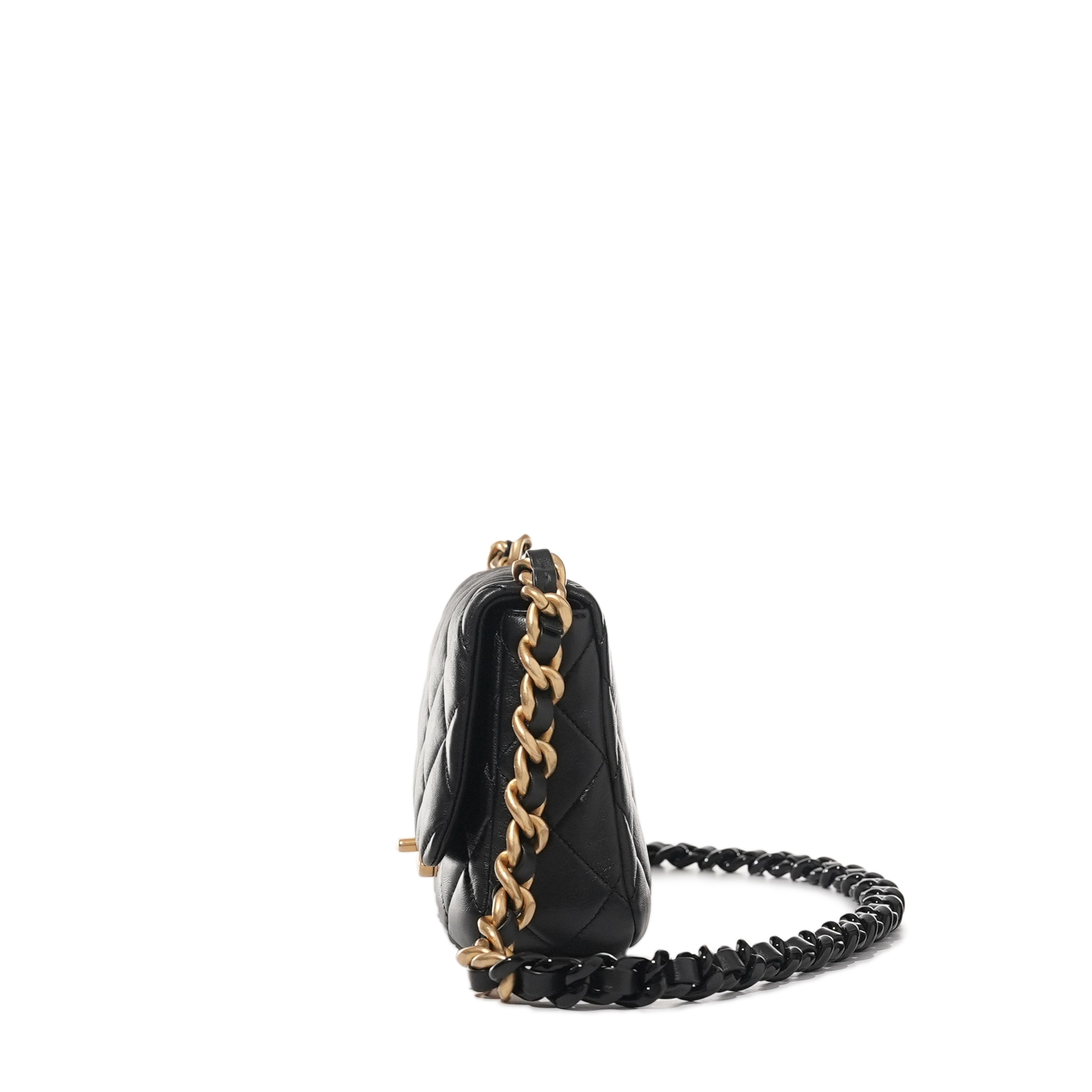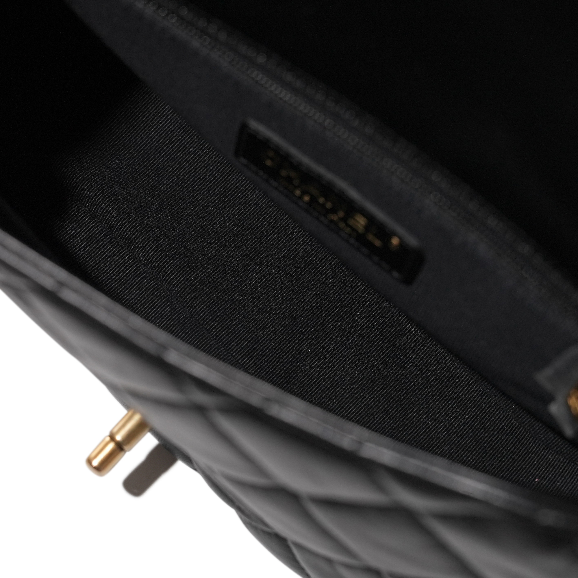 Black Quilted Lambskin Flap Bag Aged Gold Hardware, 2022