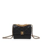 Black Quilted Lambskin Flap Bag Gold Hardware
