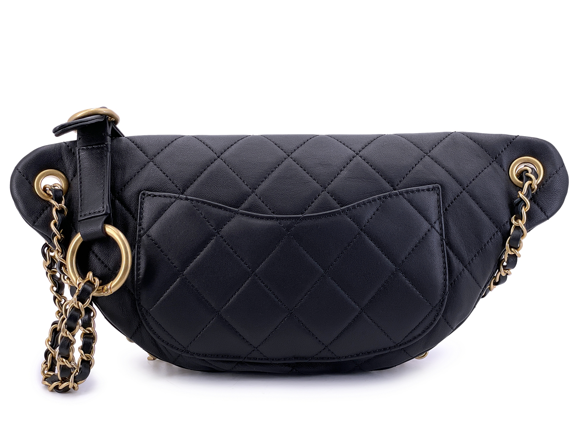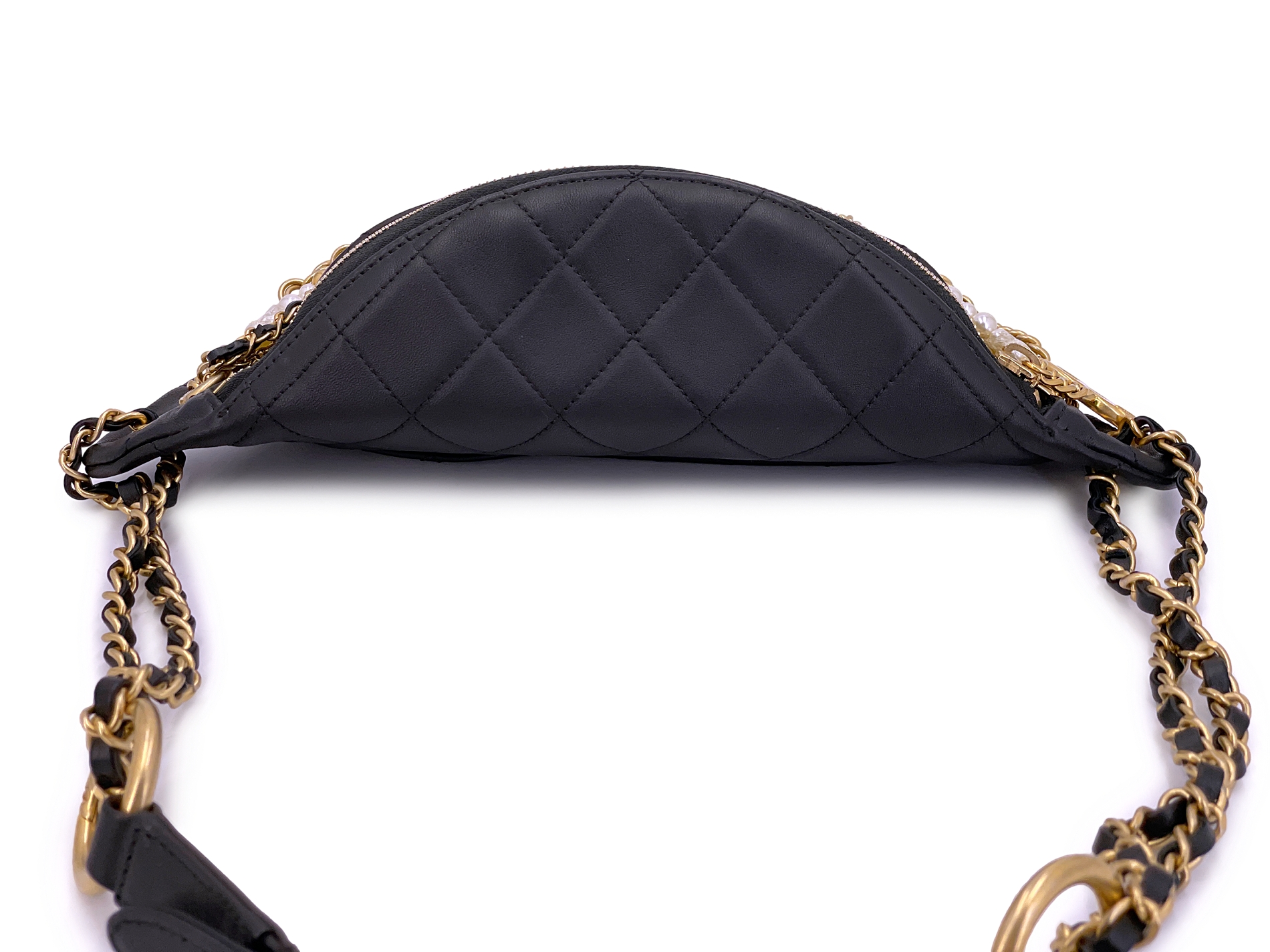 Black Quilted Lambskin, Imitation Pearl Paris-New York All About Chains Fanny Pack Waist Bag Aged Gold Hardware, 2019