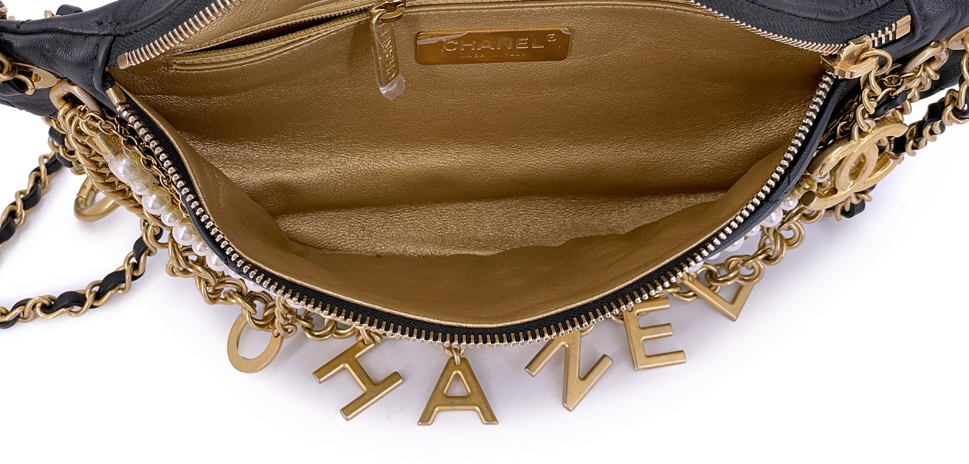 Be the first to review “Black Quilted Lambskin, Imitation Pearl Paris-New York All About Chains Fanny Pack Waist Bag Aged Gold Hardware, 2019”