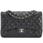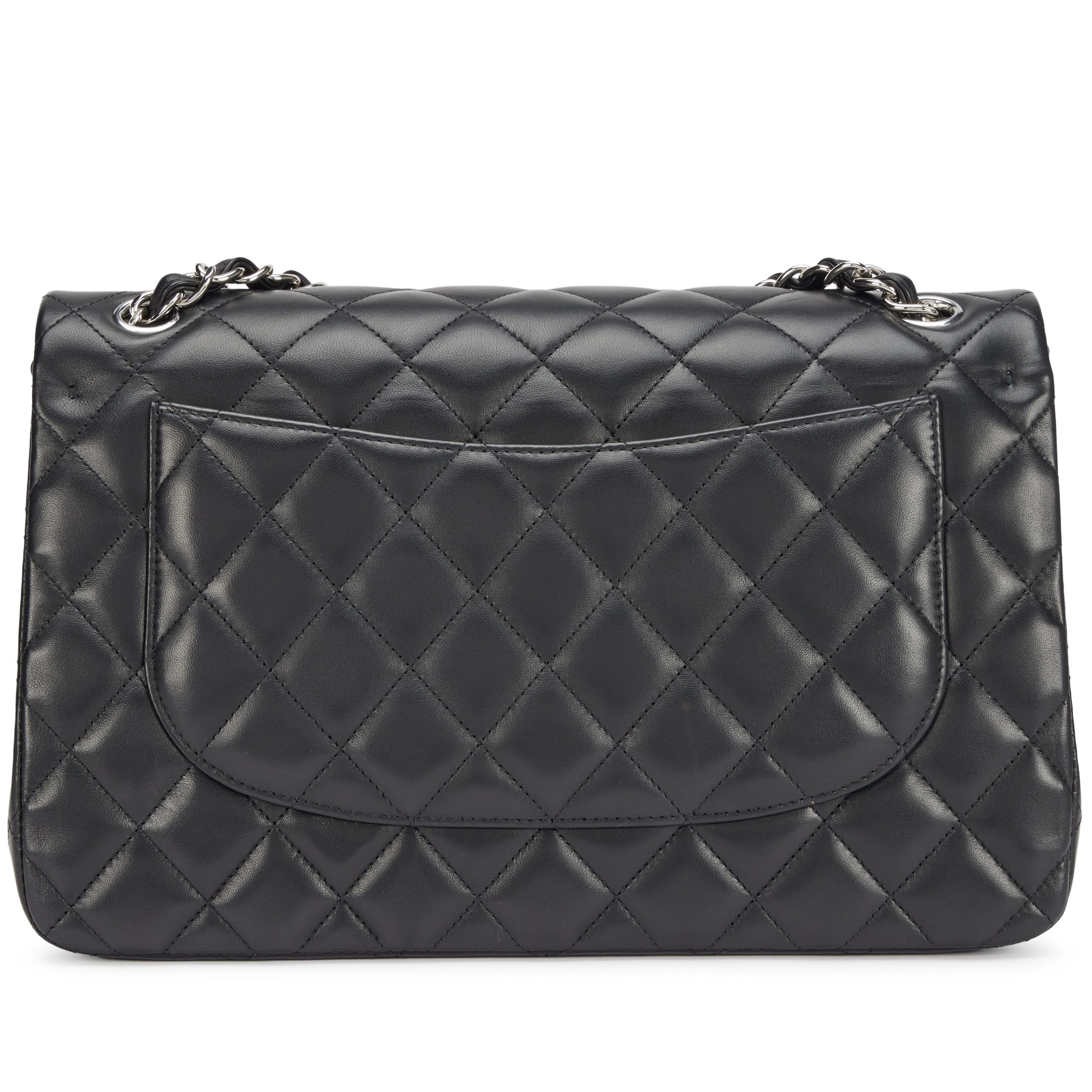 Black Quilted Lambskin Jumbo Classic Double Flap Bag Silver Hardware, 2017
