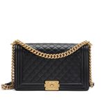 Black Quilted Lambskin Large Boy Bag Aged Gold Hardware, 2015-2016
