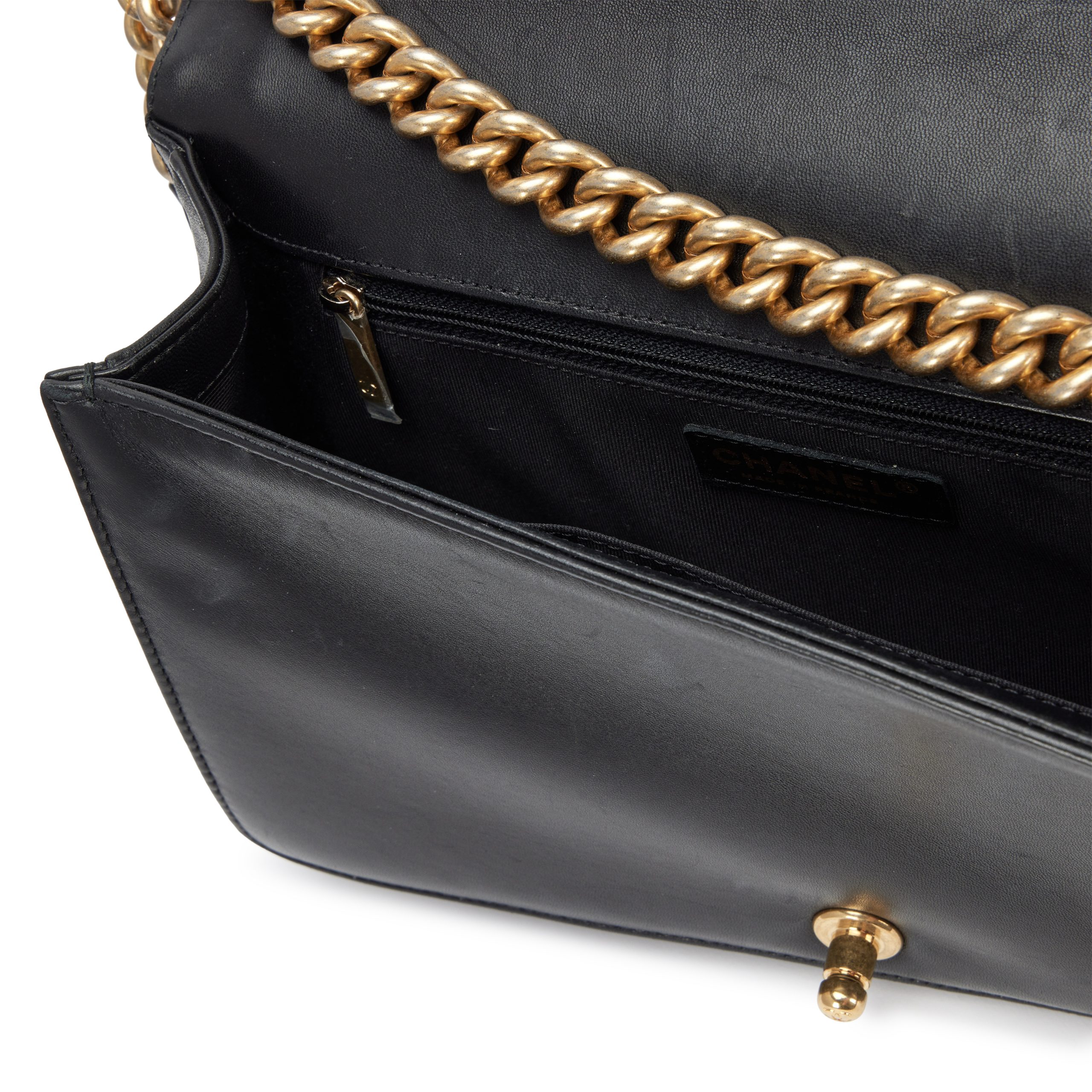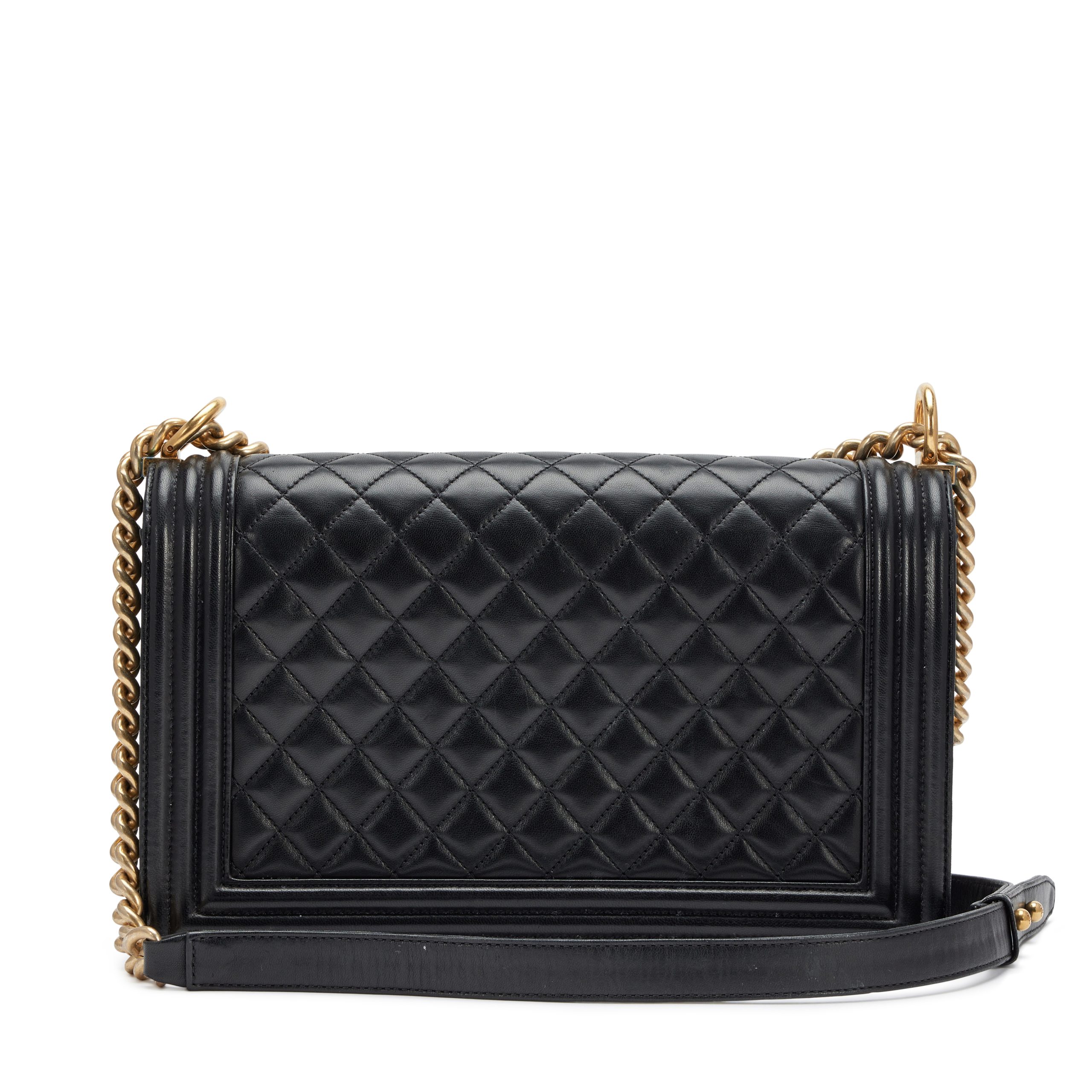 Chanel Black Quilted Lambskin Large Boy Bag Aged Gold Hardware, 2015-2016The interior is lined in a tonal textile materialIncludes authenticity card, information booklet, felt, dust bag, and boxThis item is final sale