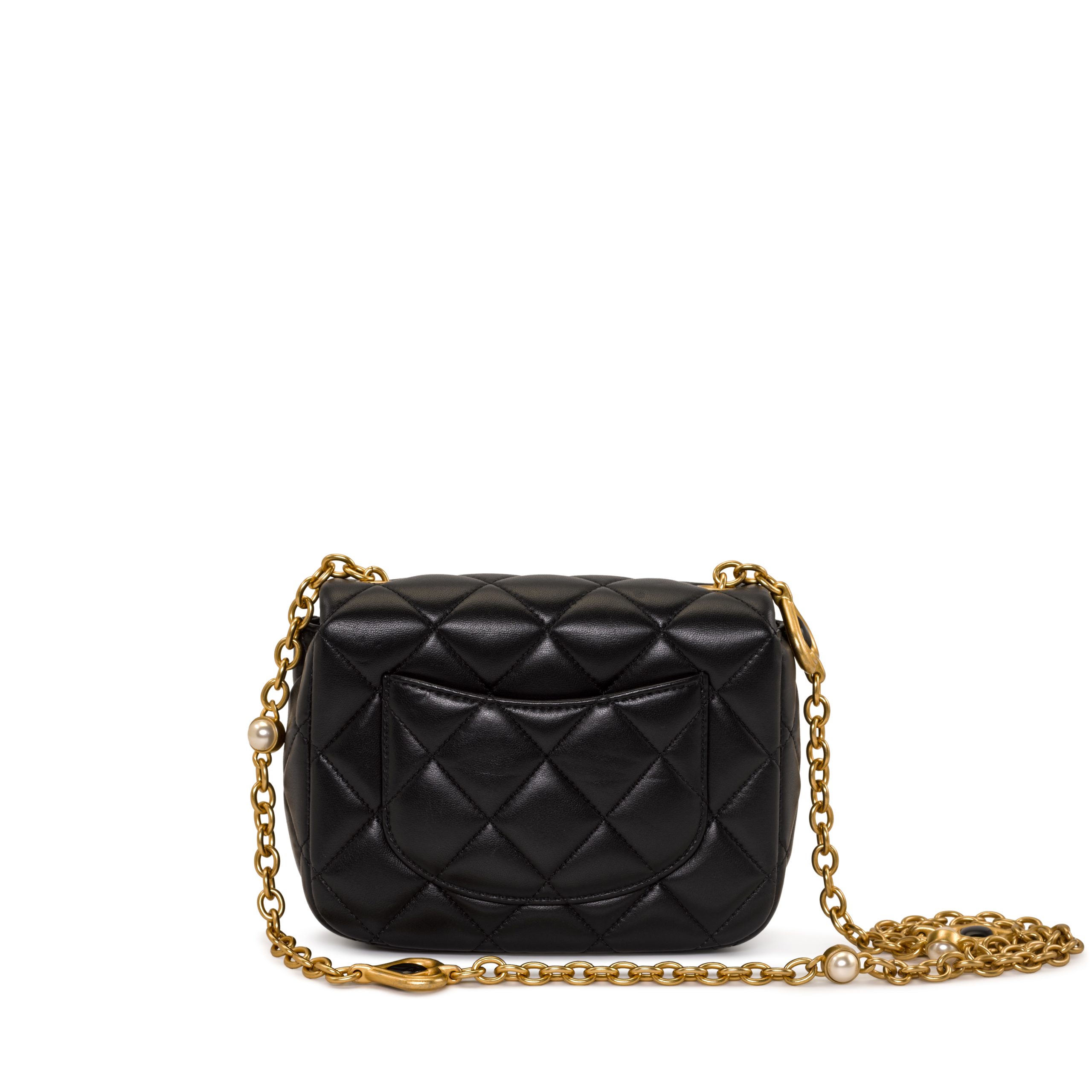 Be the first to review “Black Quilted Lambskin Mini Rectangular Gemstone and Imitation Pearl Heart Chain Classic Single Flap Gold Hardware, 2022”