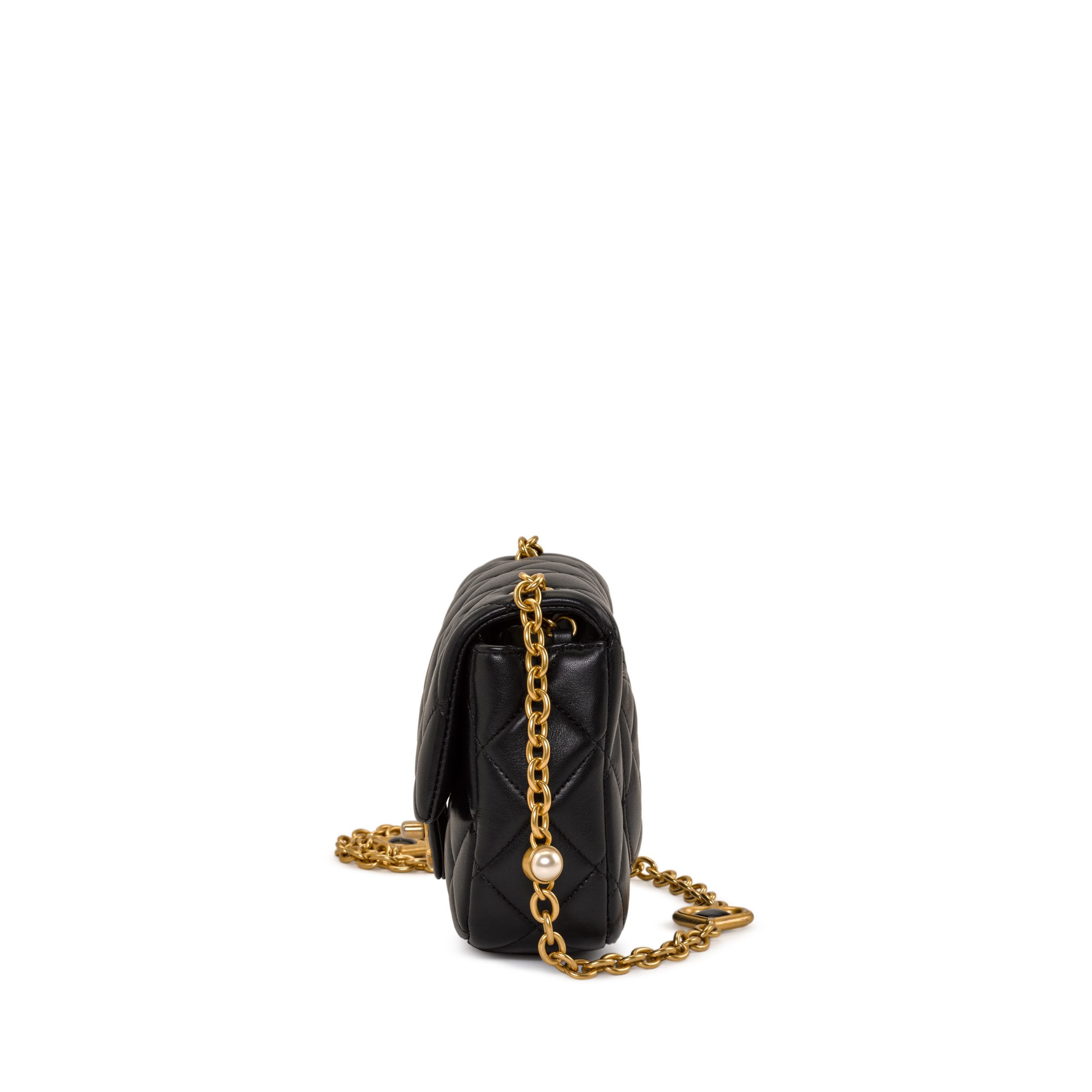 Black Quilted Lambskin Mini Rectangular Gemstone and Imitation Pearl Heart Chain Classic Single Flap Gold Hardware, 2022