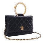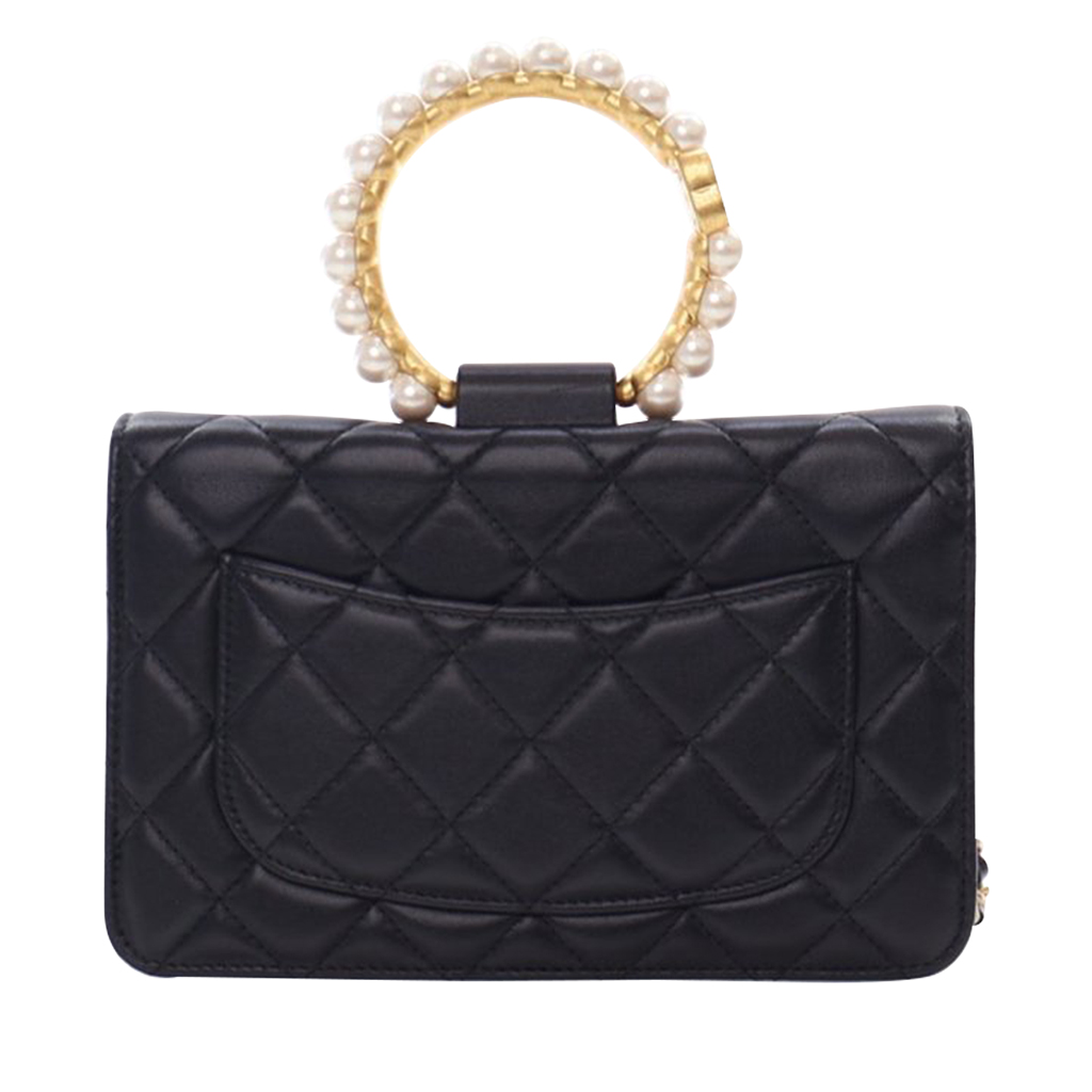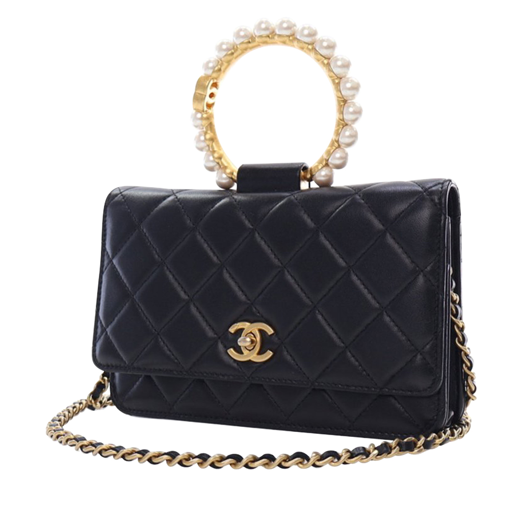 Black Quilted Lambskin Pearl Crown Wallet On Chain WOC Aged Gold Hardware, 2021