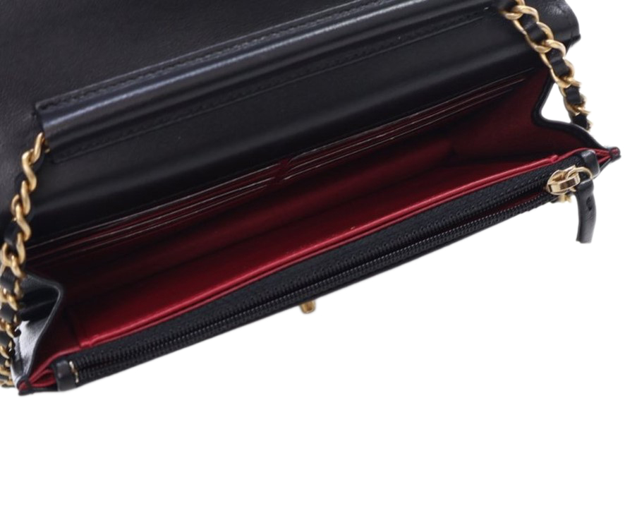Chanel Black Quilted Lambskin Pearl Crown Wallet On Chain WOC Aged Gold Hardware, 2021The interior is lined in a burgundy leatherThis item is final sale