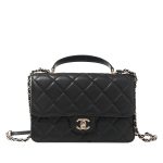 Chanel Black Quilted Lambskin Top Handle Flap Bag Pale Gold Hardware The interior is lined in tonal leather Includes box This item is final sale