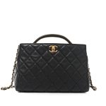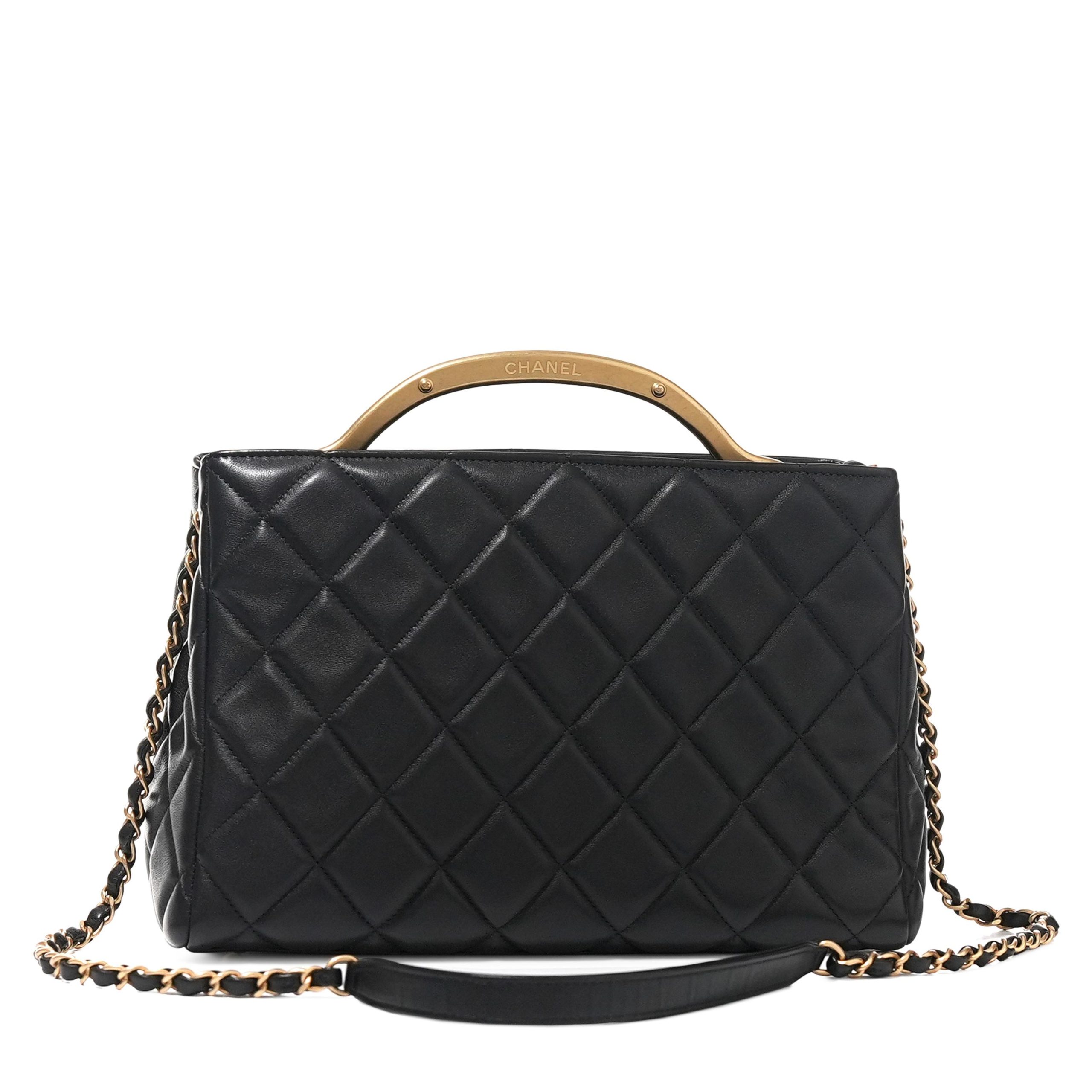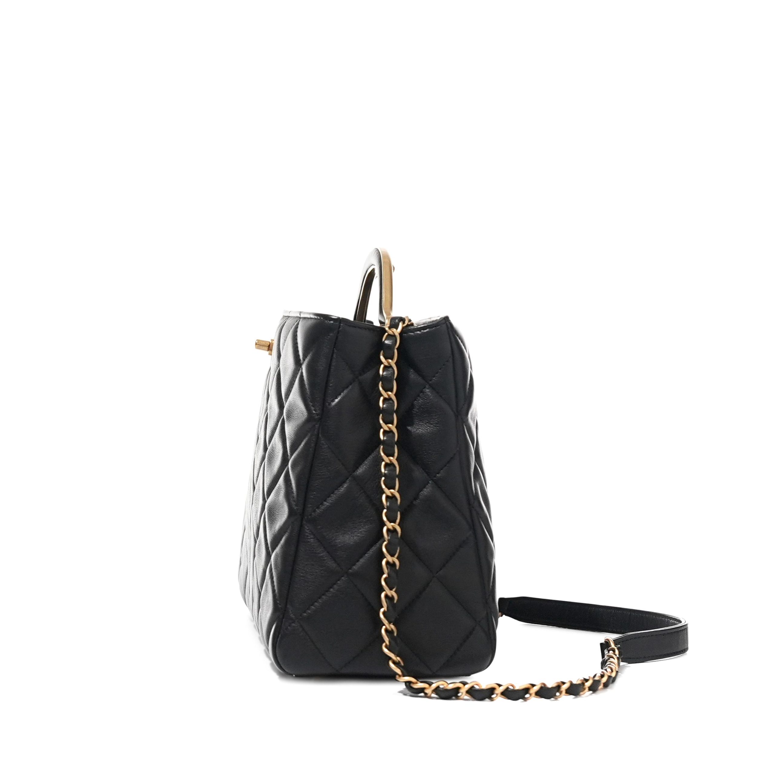 Chanel Black Quilted Lambskin Top Handle Shopping Bag Brushed Gold Hardware, 2021The interior is lined with tonal textile materialIncludes dust bag and boxThis item is final sale