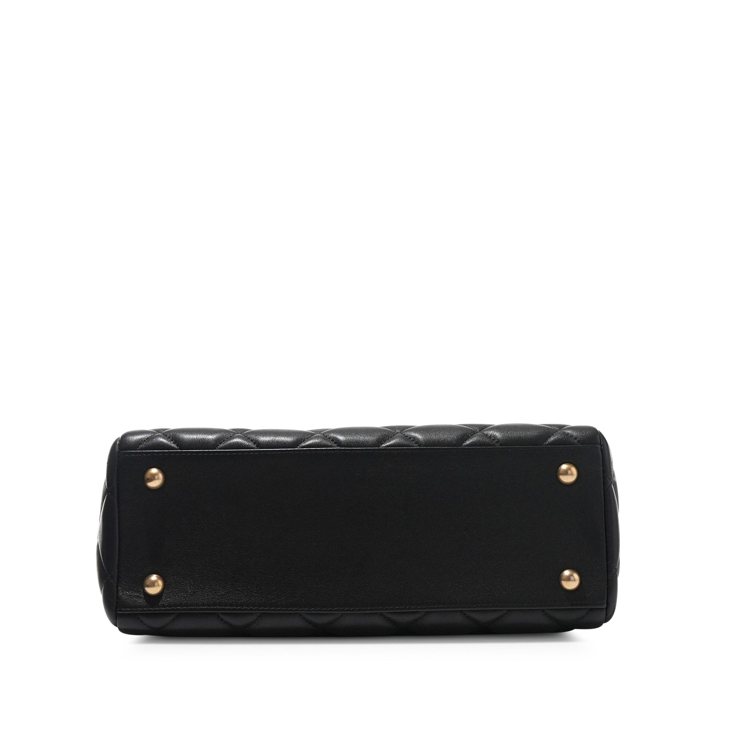 Black Quilted Lambskin Top Handle Shopping Bag Brushed Gold Hardware, 2021