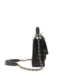 Black Quilted Patent Leather Top Handle Flap Bag Gold Hardware