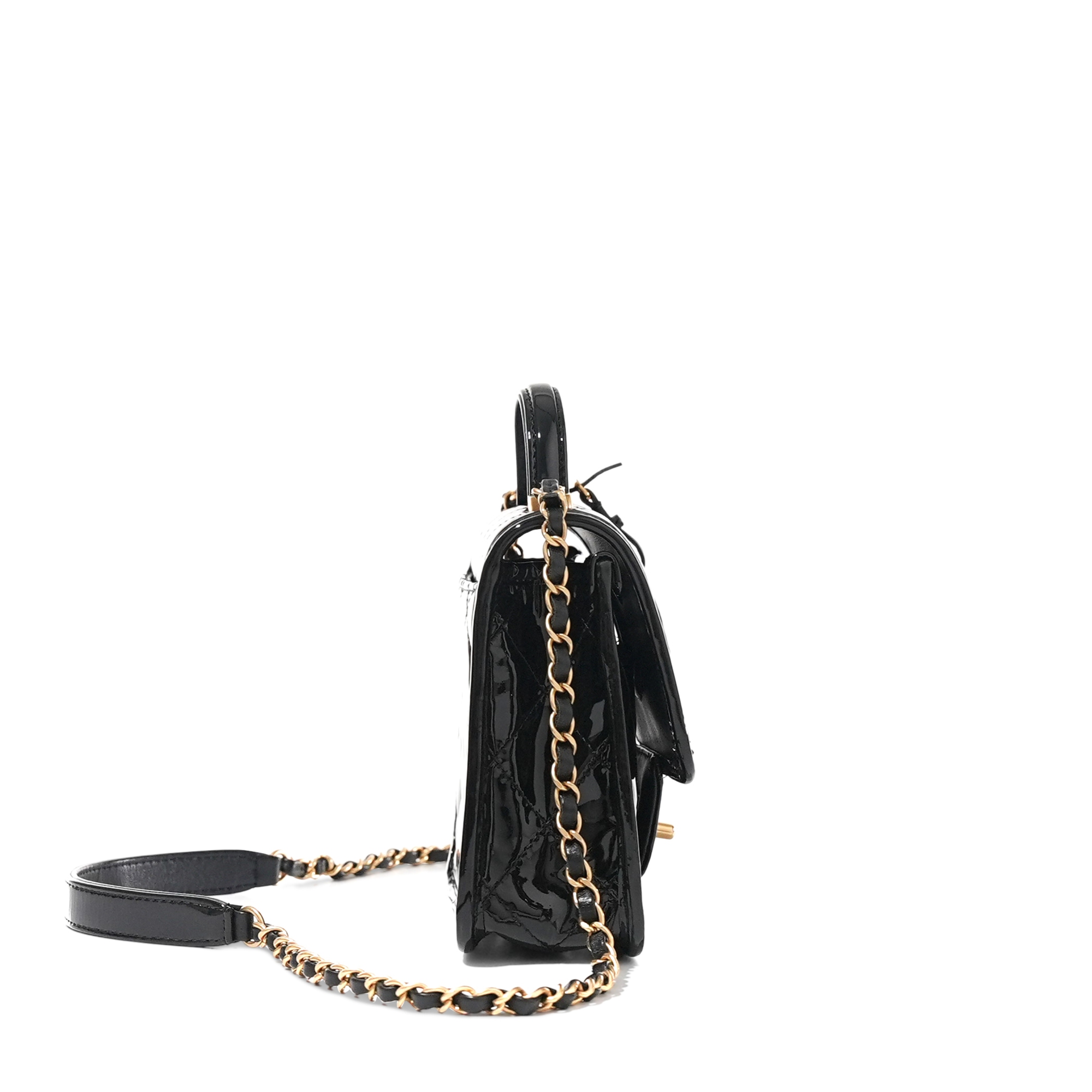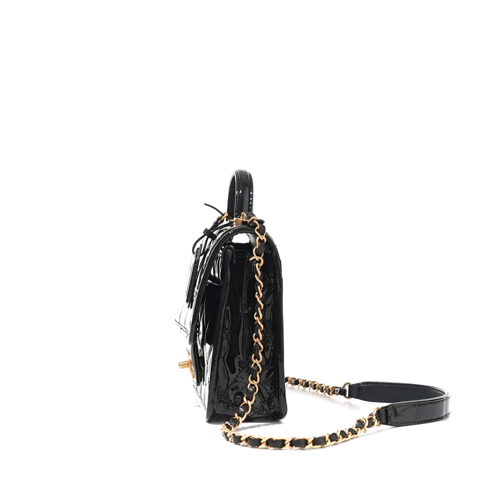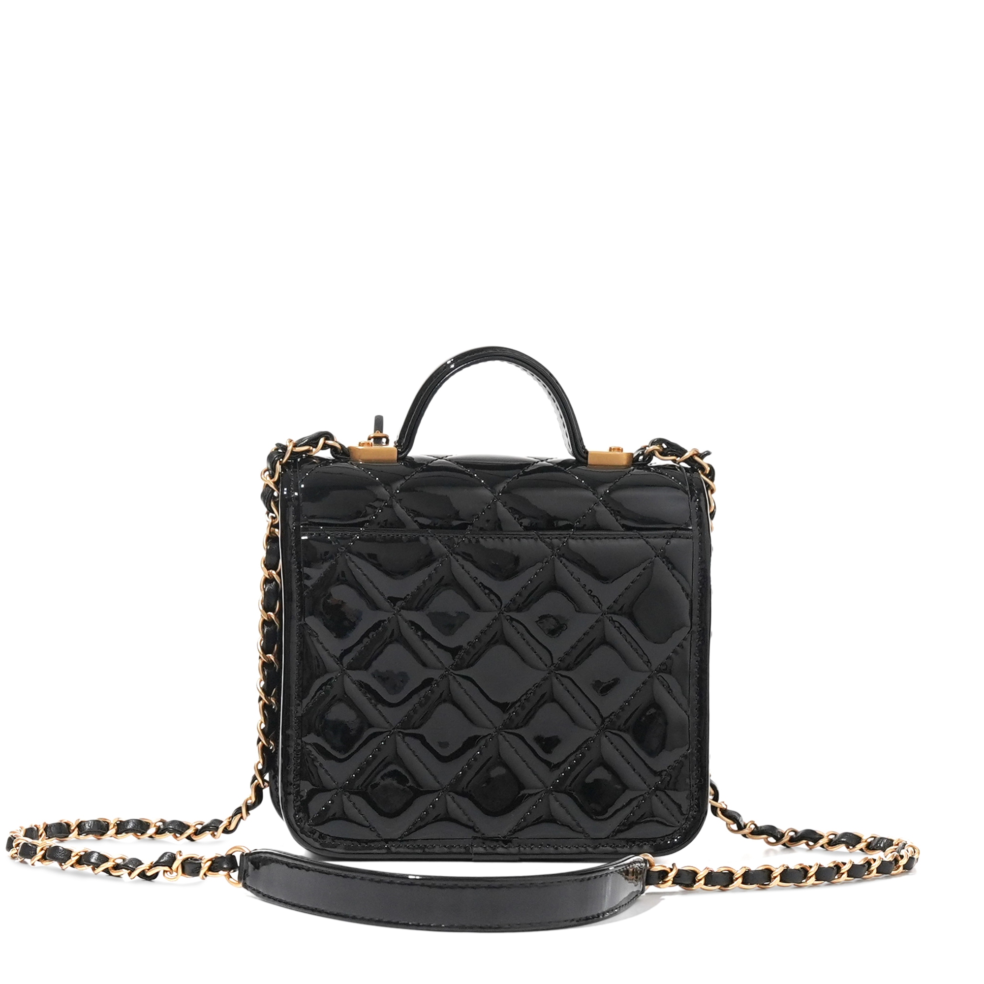 Chanel Black Quilted Patent Leather Top Handle Flap Bag Gold HardwareThe interior is lined with tonal textile material This item is final sale