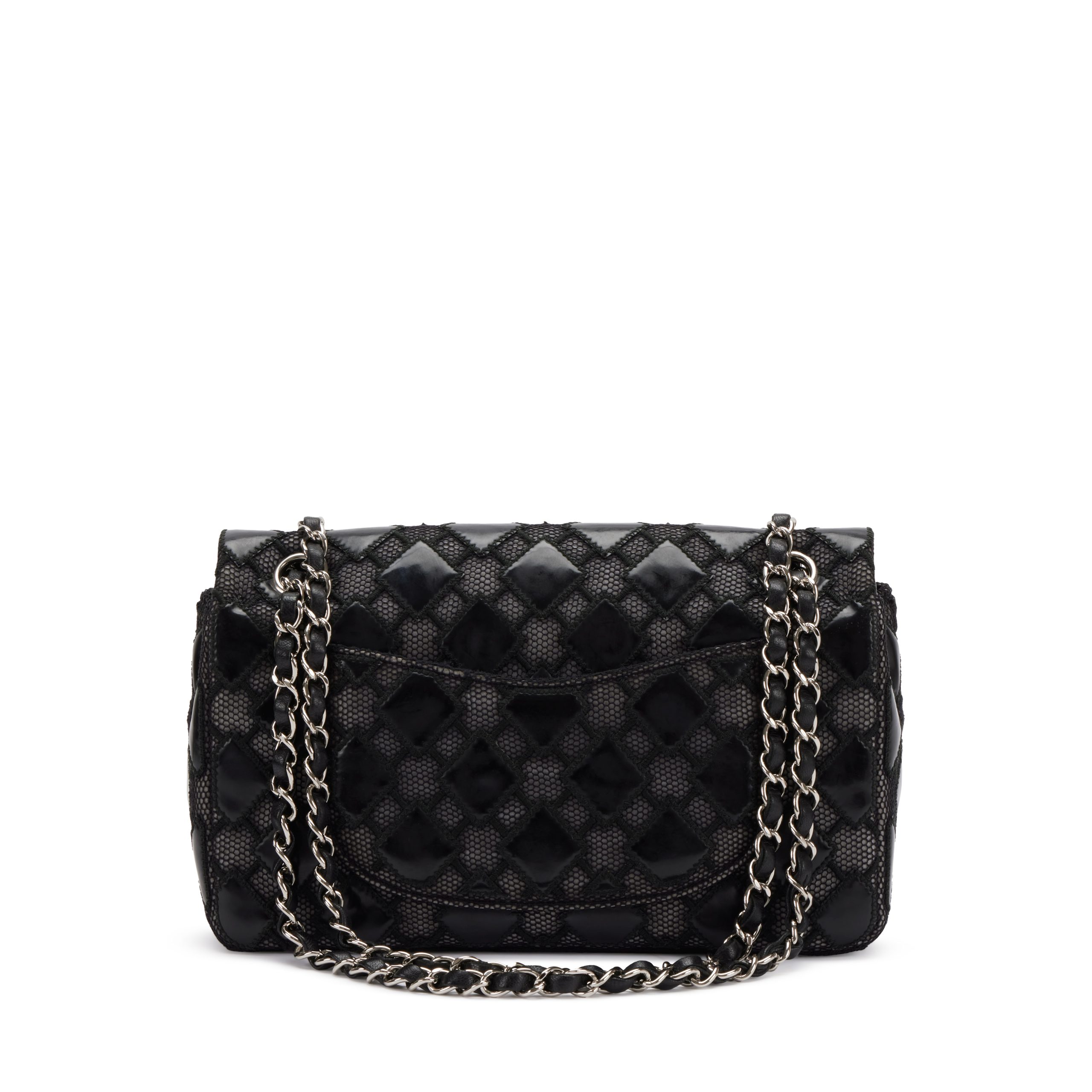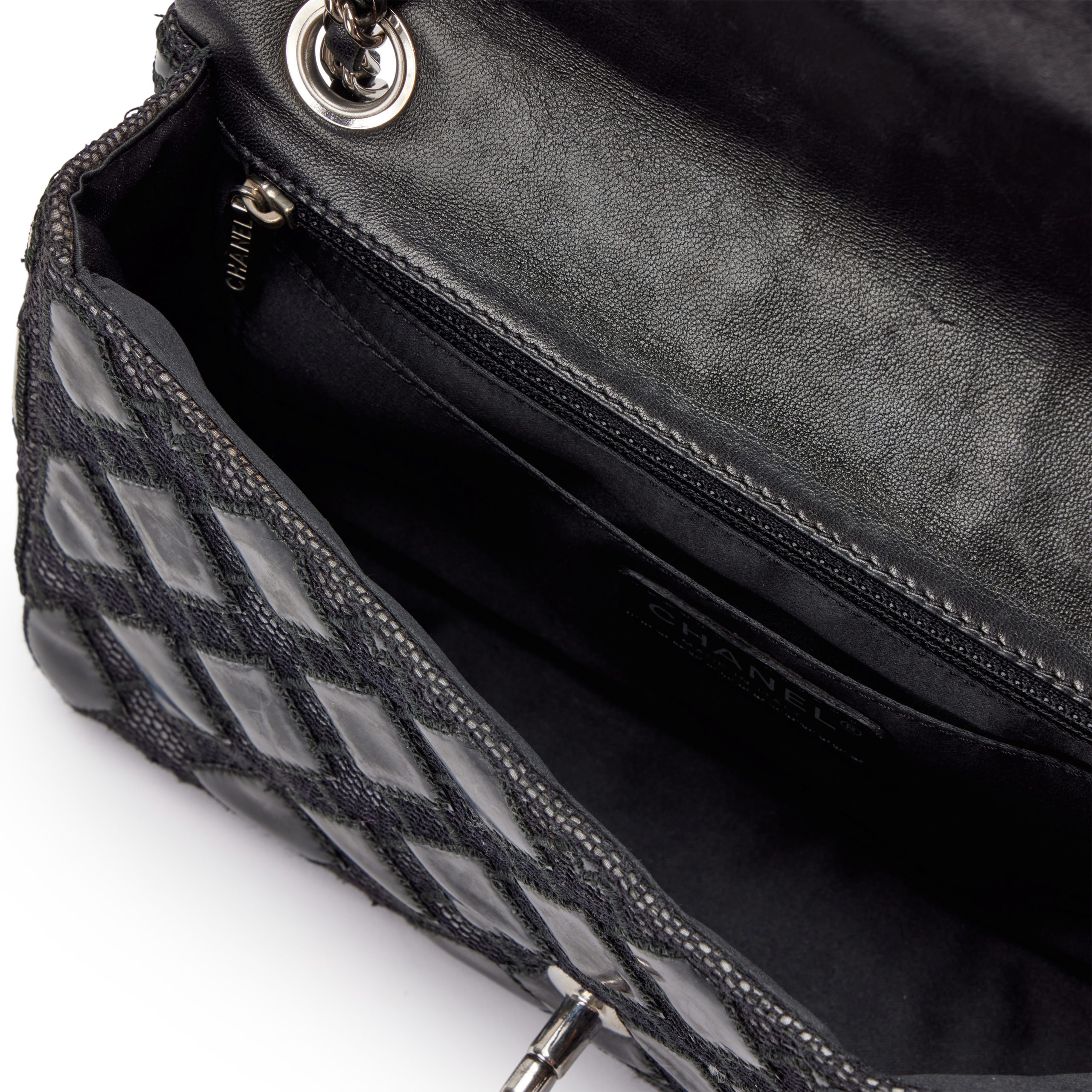 Chanel Black Quilted Vinyl and Mesh Medium Classic Single Flap Bag Silver Hardware, 2010-2011The interior is lined in a black satinIncludes authenticity cardThis item is final sale