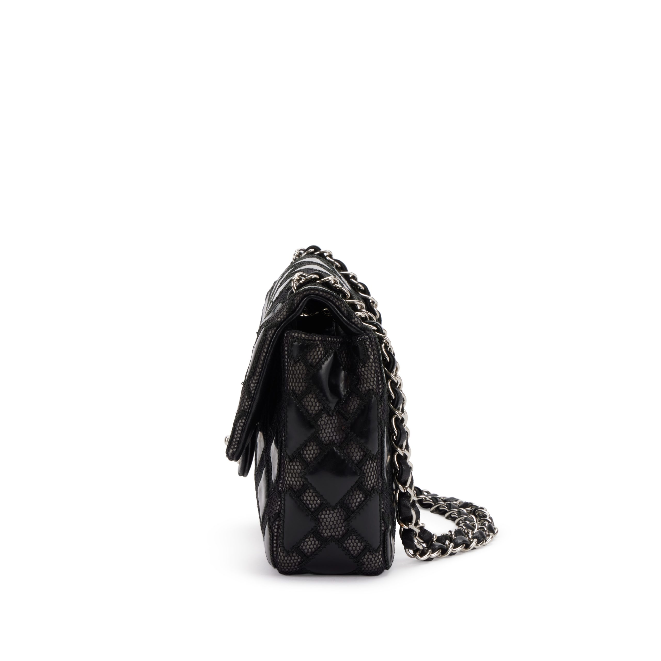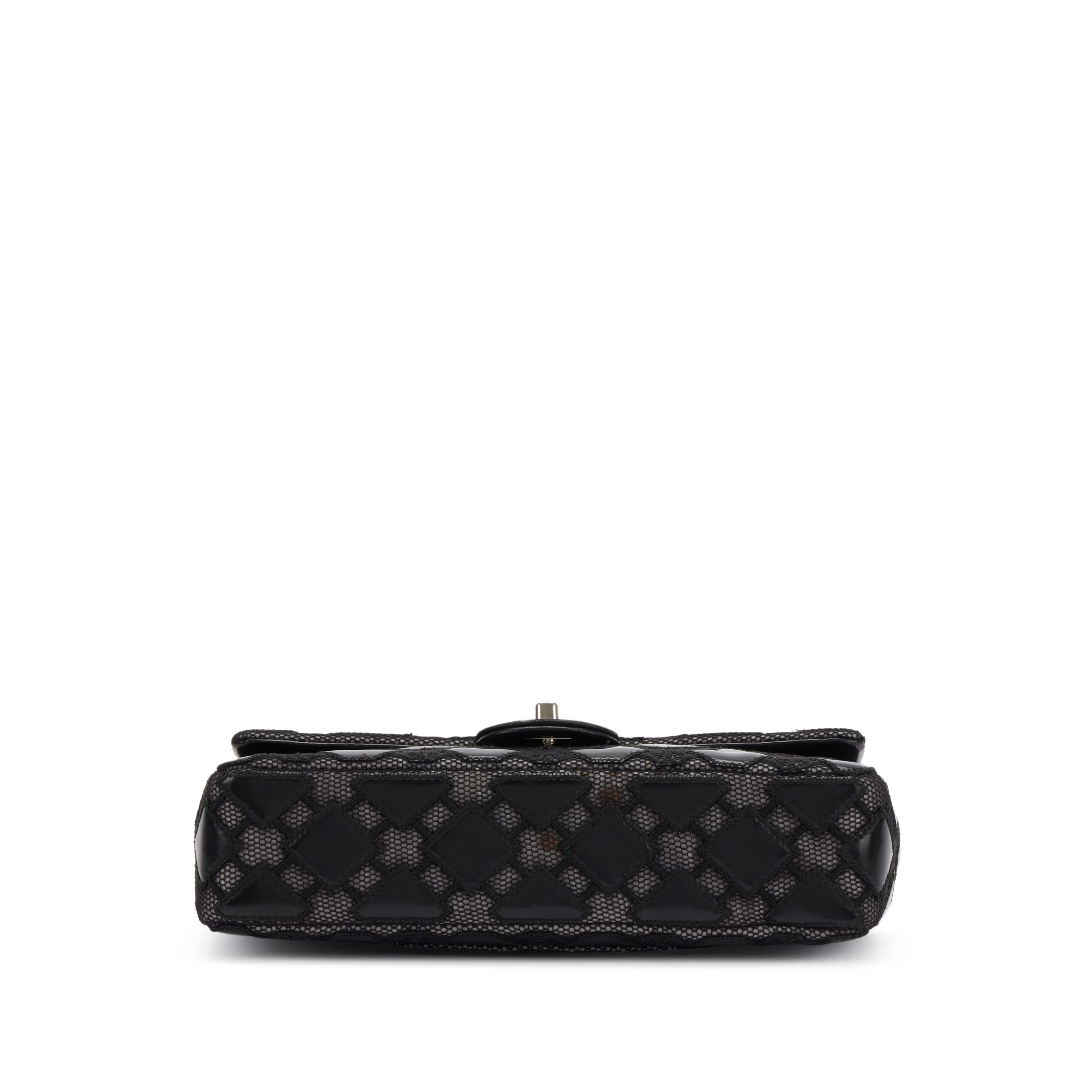 Black Quilted Vinyl and Mesh Medium Classic Single Flap Bag Silver Hardware, 2010-2011