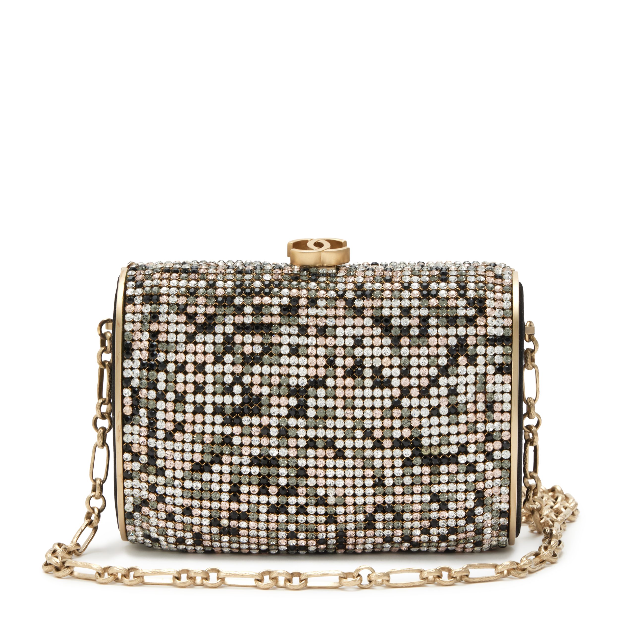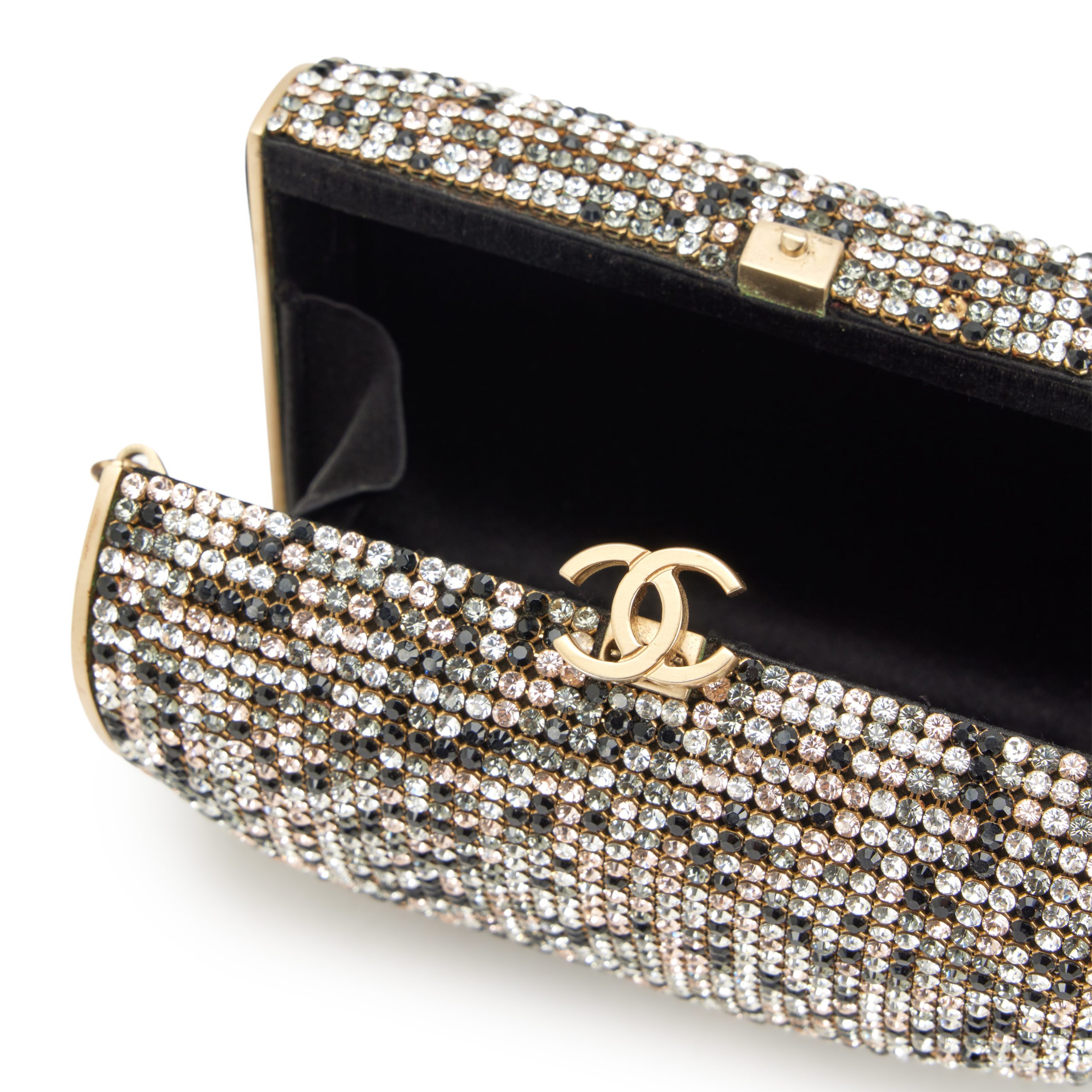 Chanel Black Satin and Multicolor Swarovski Crystal Evening Clutch Pale Gold Hardware, 2008-2009The interior is lined in a black satinThis item is final sale