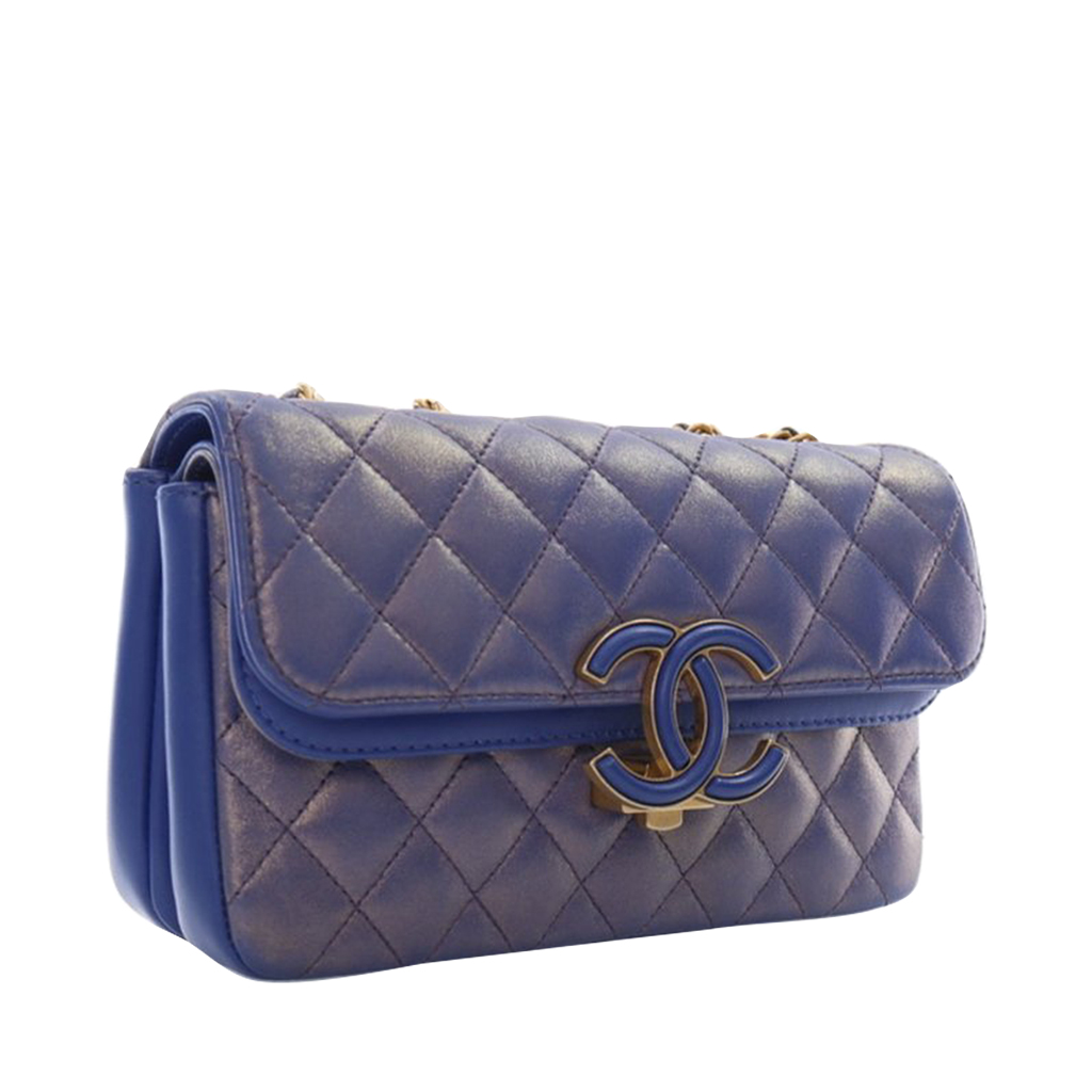 Chanel Blue and Gold Quilted Lambskin CC Chic Small Double Flap Bag Aged Gold Hardware, 2020-2021The interior is lined in a tonal leatherIncludes authenticity card and tagThis item is final sale