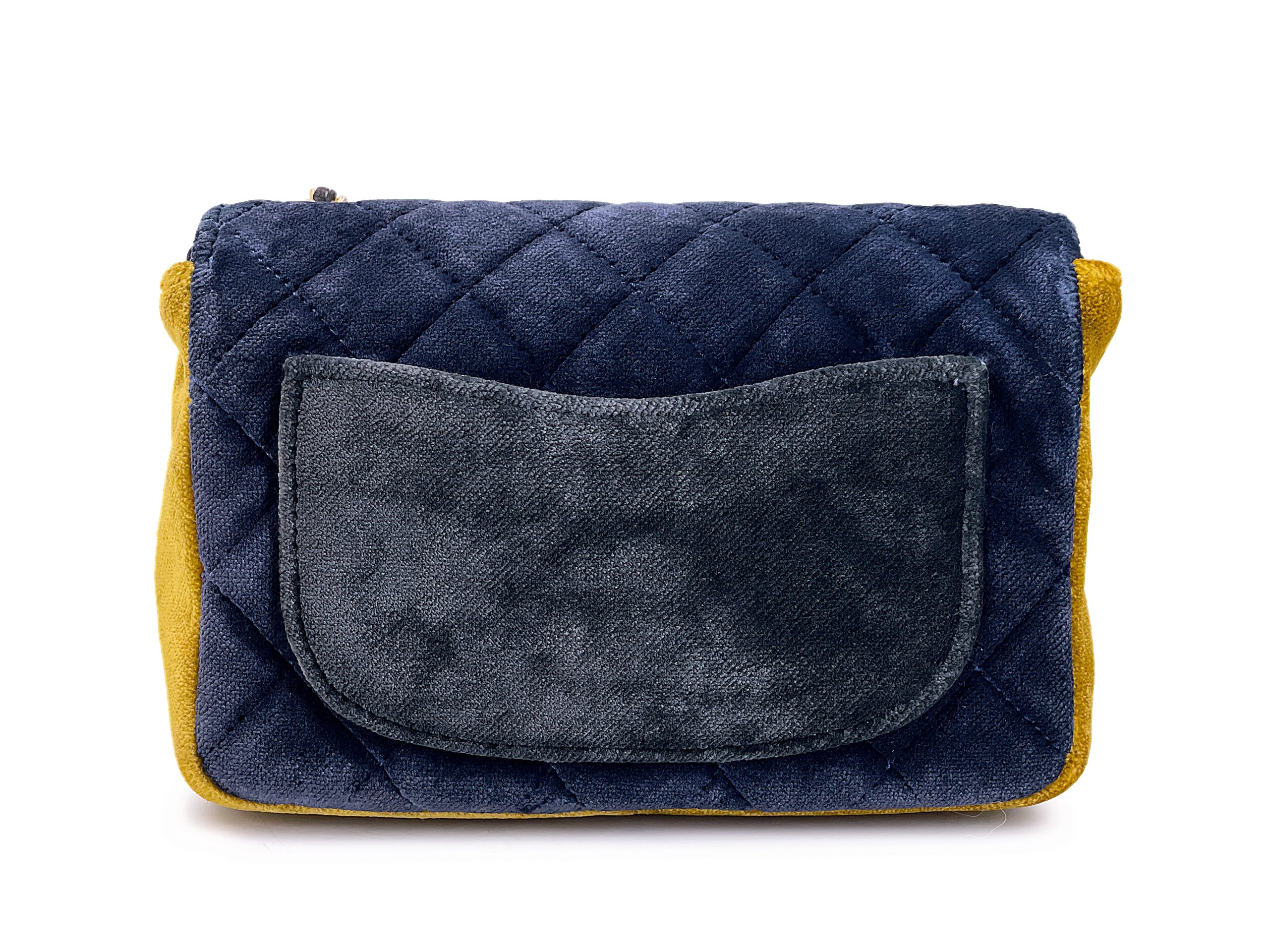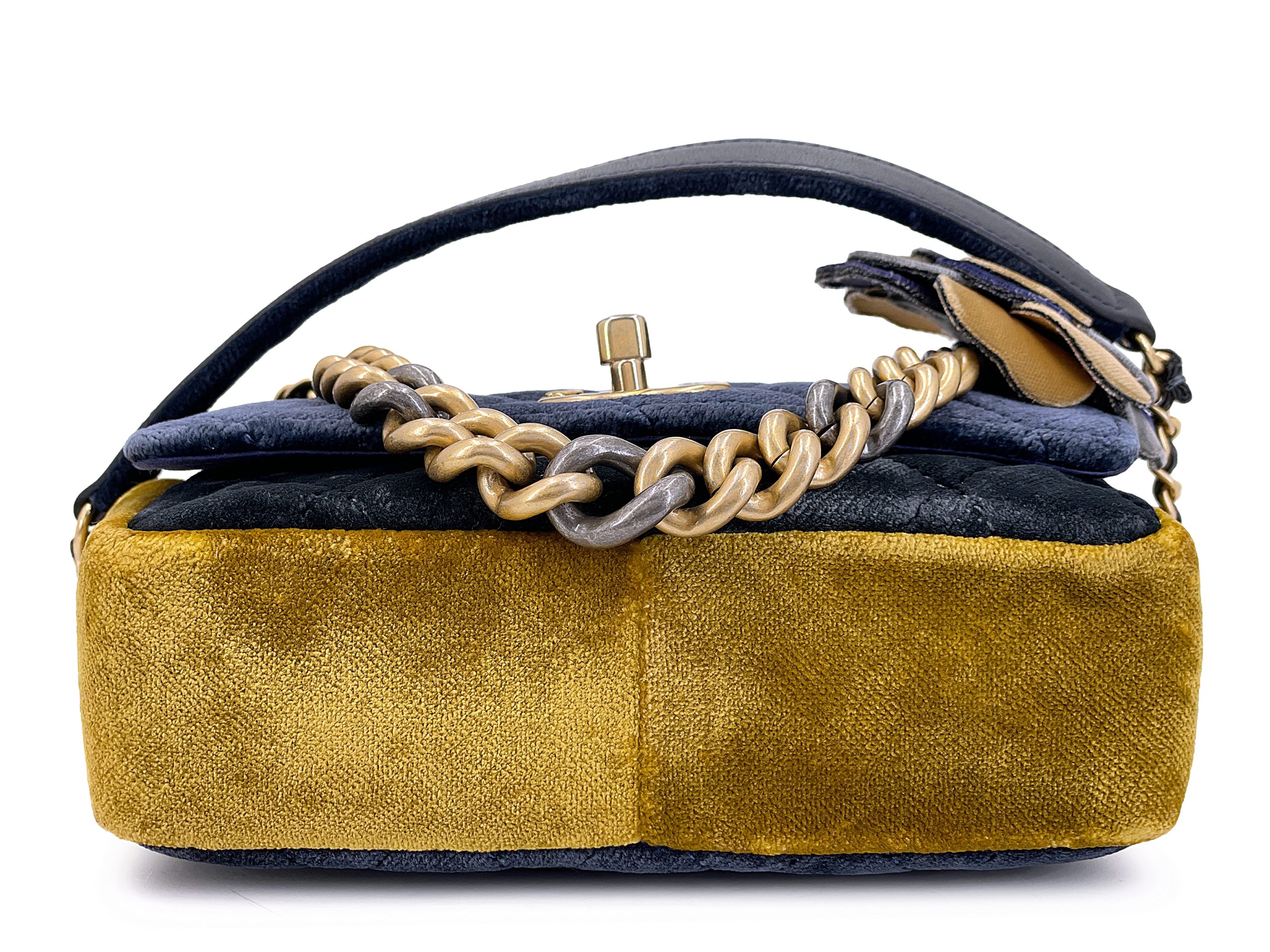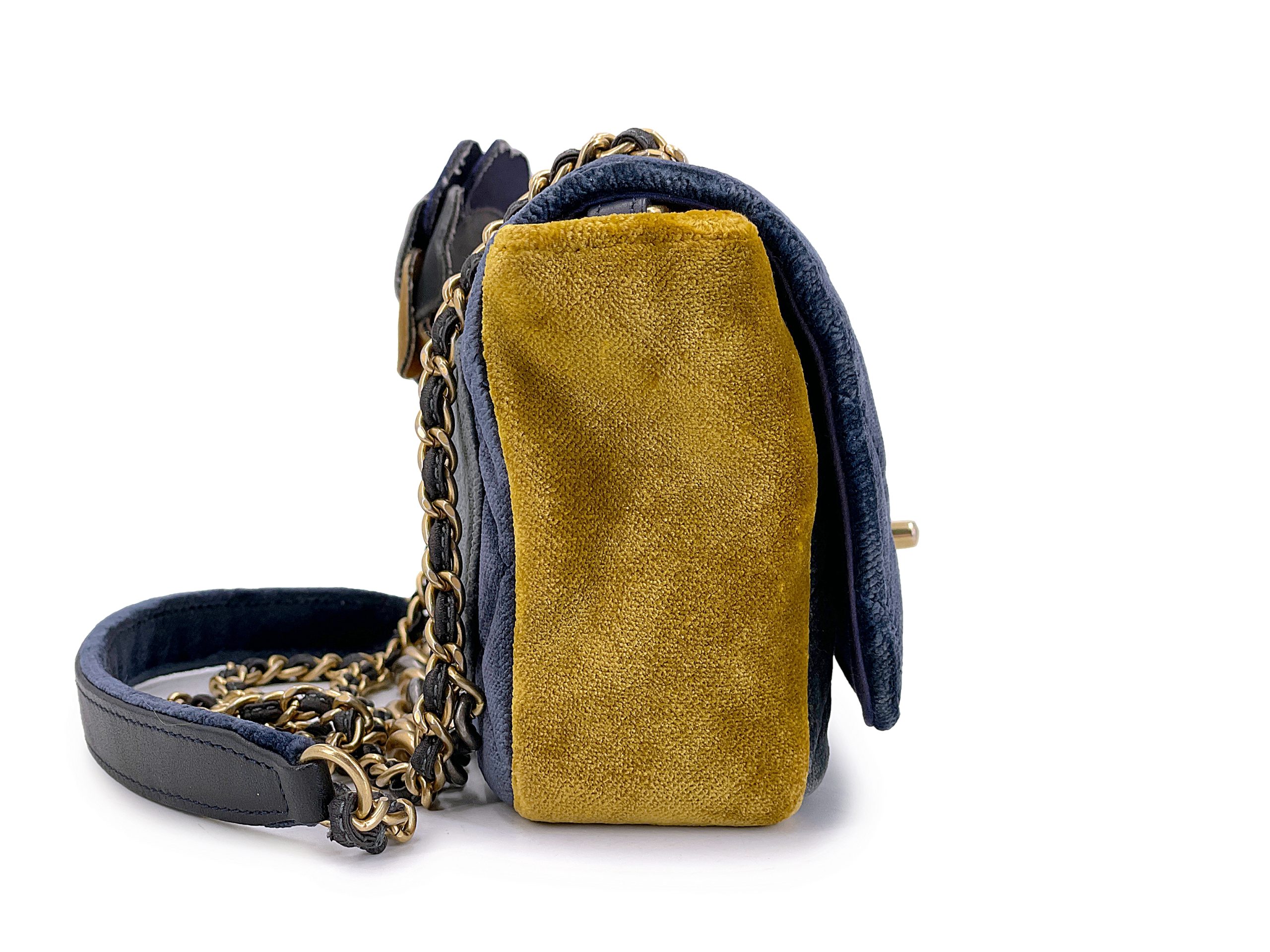 Blue, Gray, and Dark Gold Velvet Paris-Cosmopolite Mtiers d’Art Mini Flap Bag Aged Gold and Silver Hardware, 2018