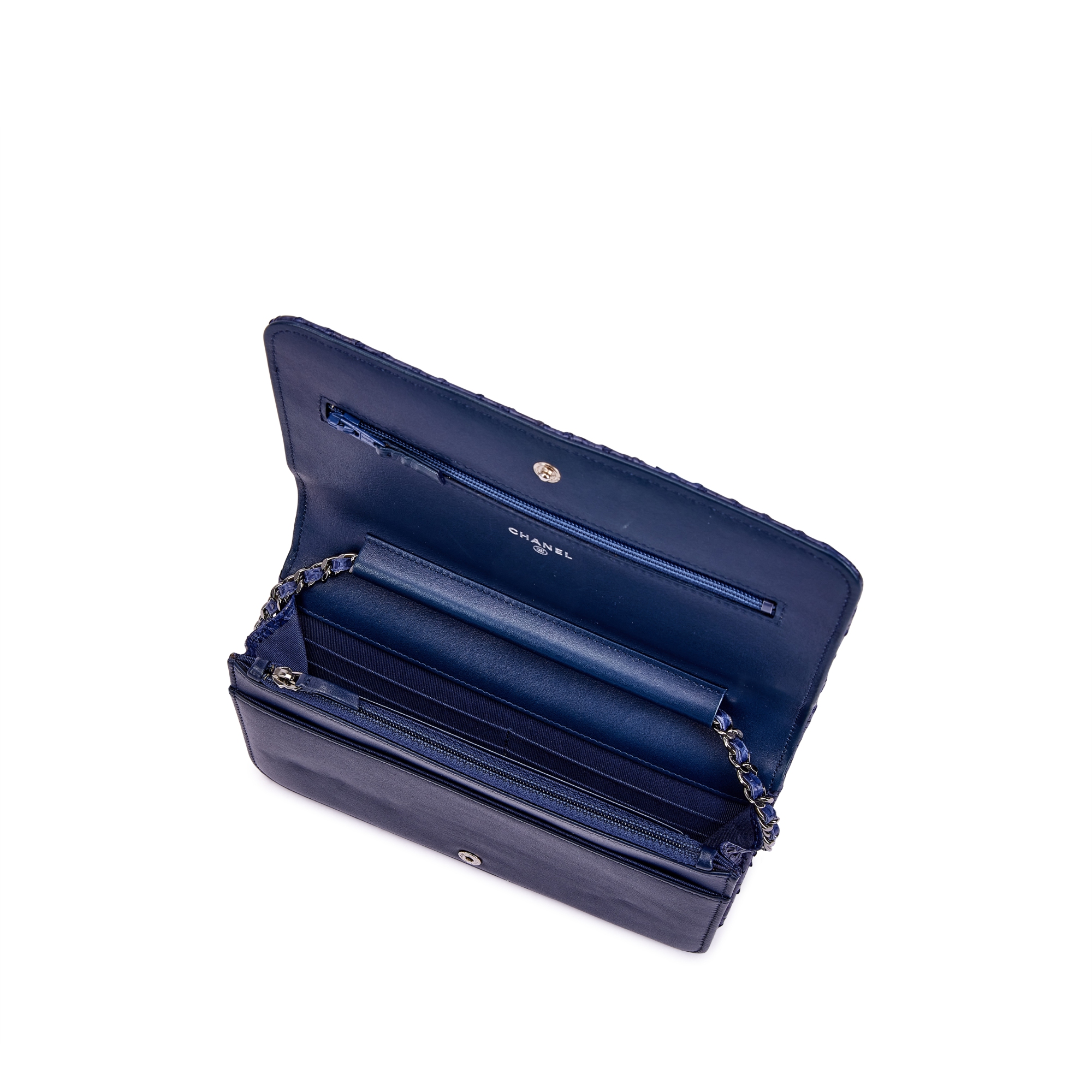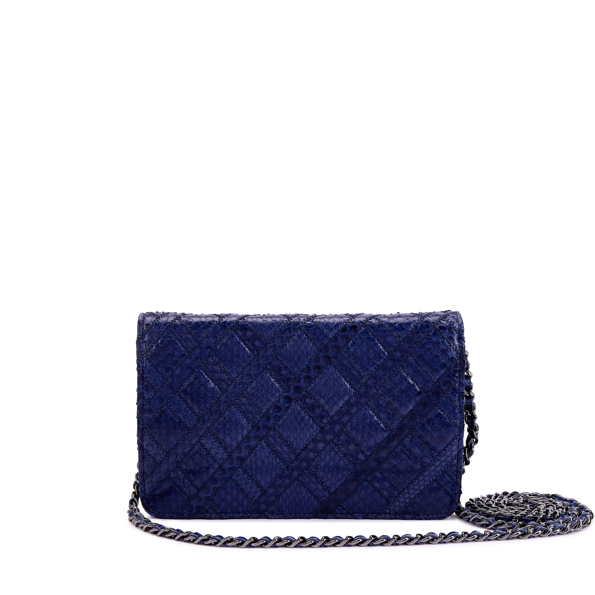 Chanel Blue Python Wallet on Chain Silver Hardware, 2014-15The interior is lined with tonal textile materialIncludes authenticity card, care booklet, dust bag and box This item is final sale