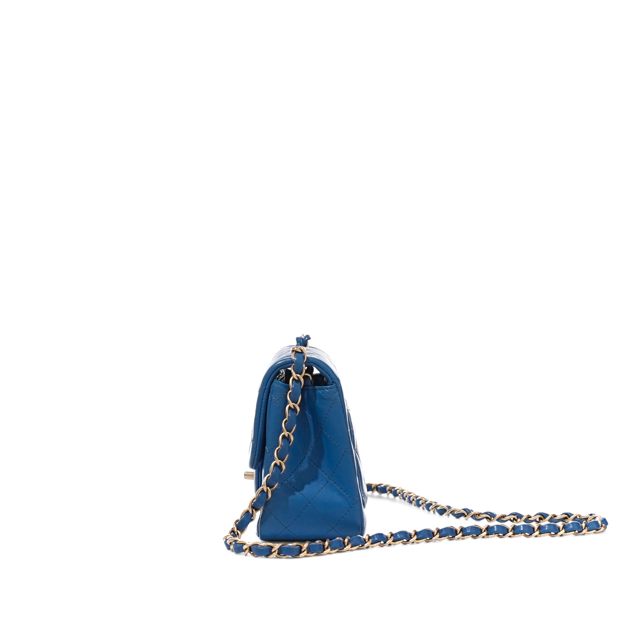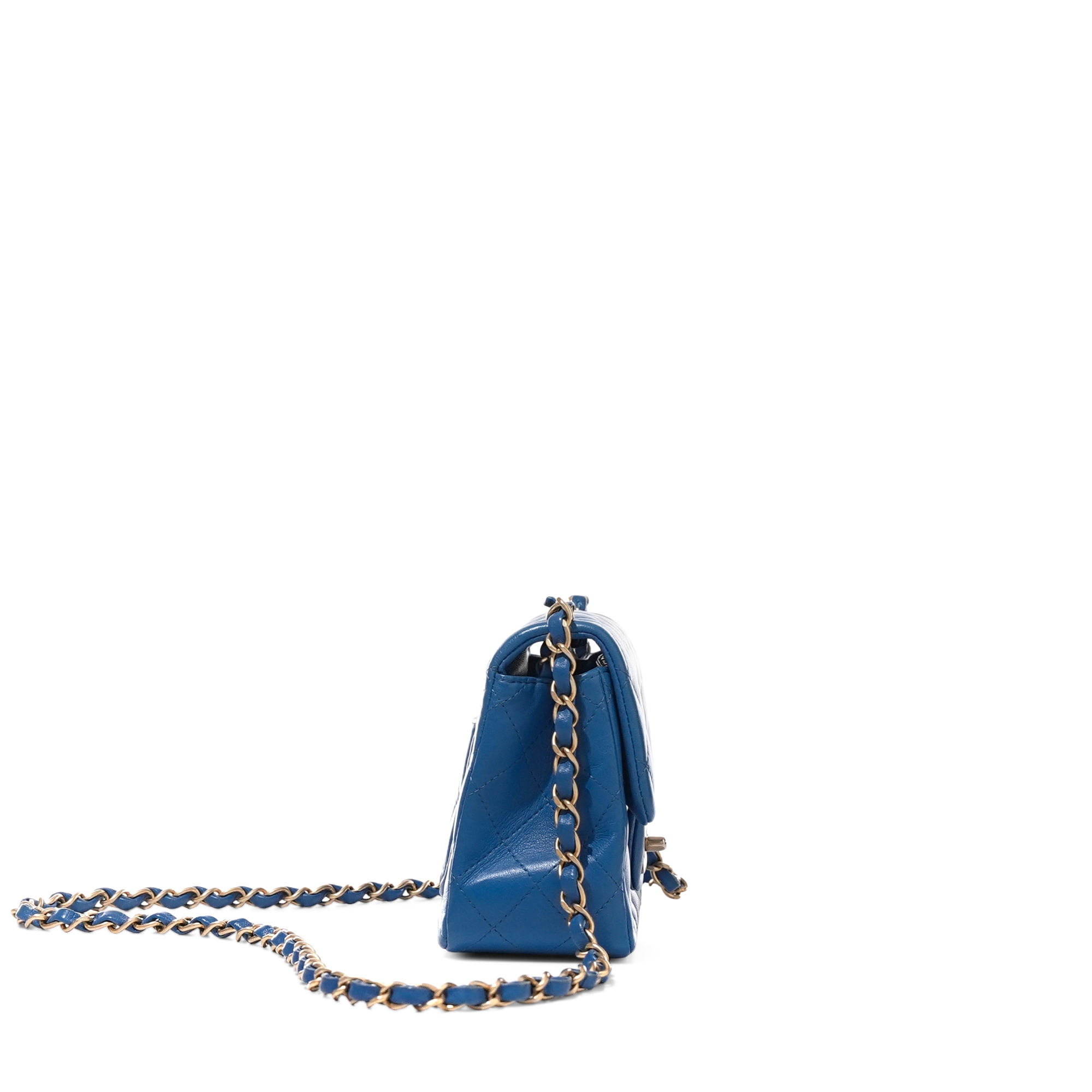 Blue Quilted Lambskin Flap Bag Aged Gold Hardware, 2019