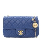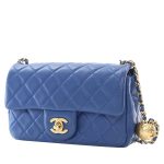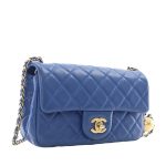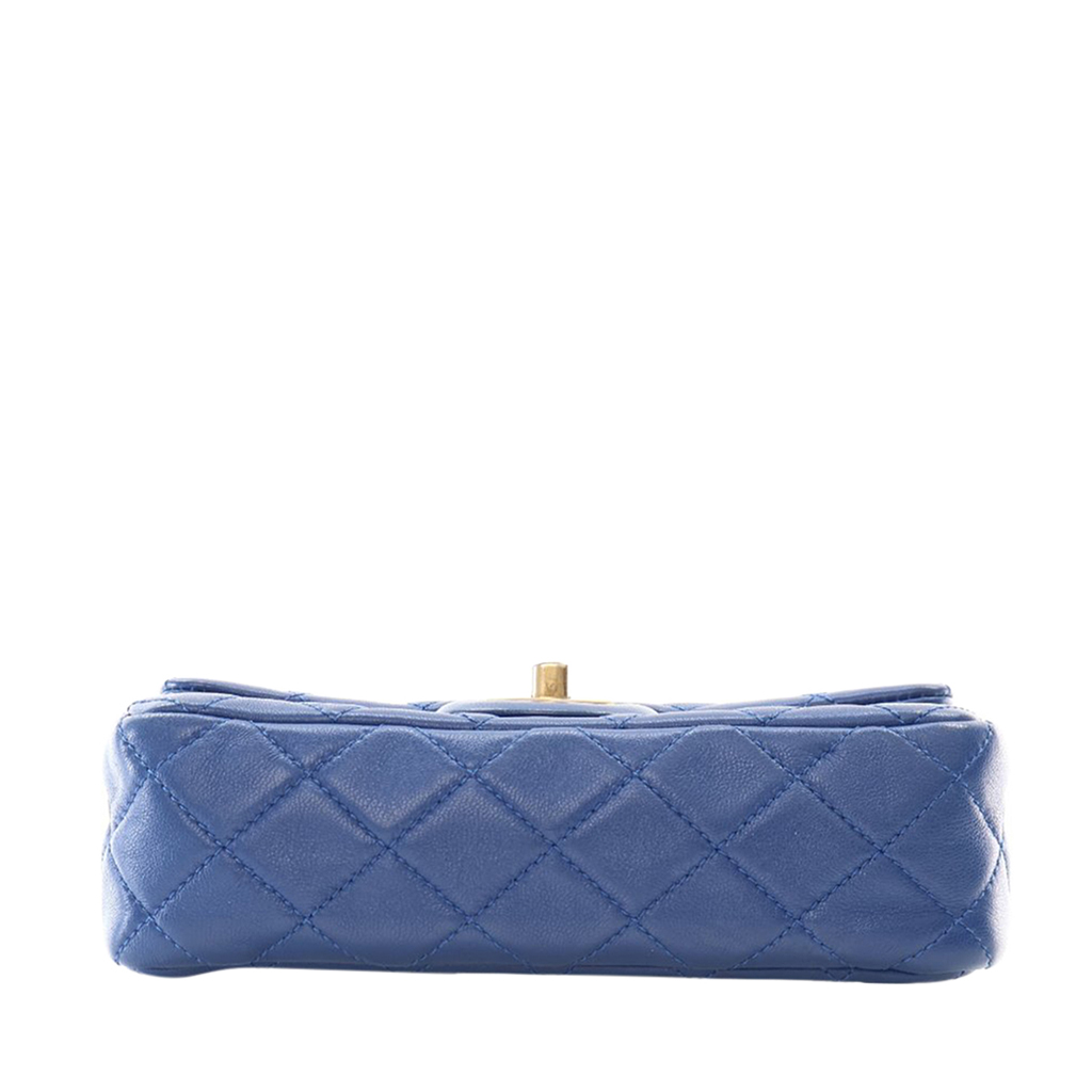 Blue Quilted Lambskin Pearl Crush Flap Bag Aged Gold Hardware, 2020