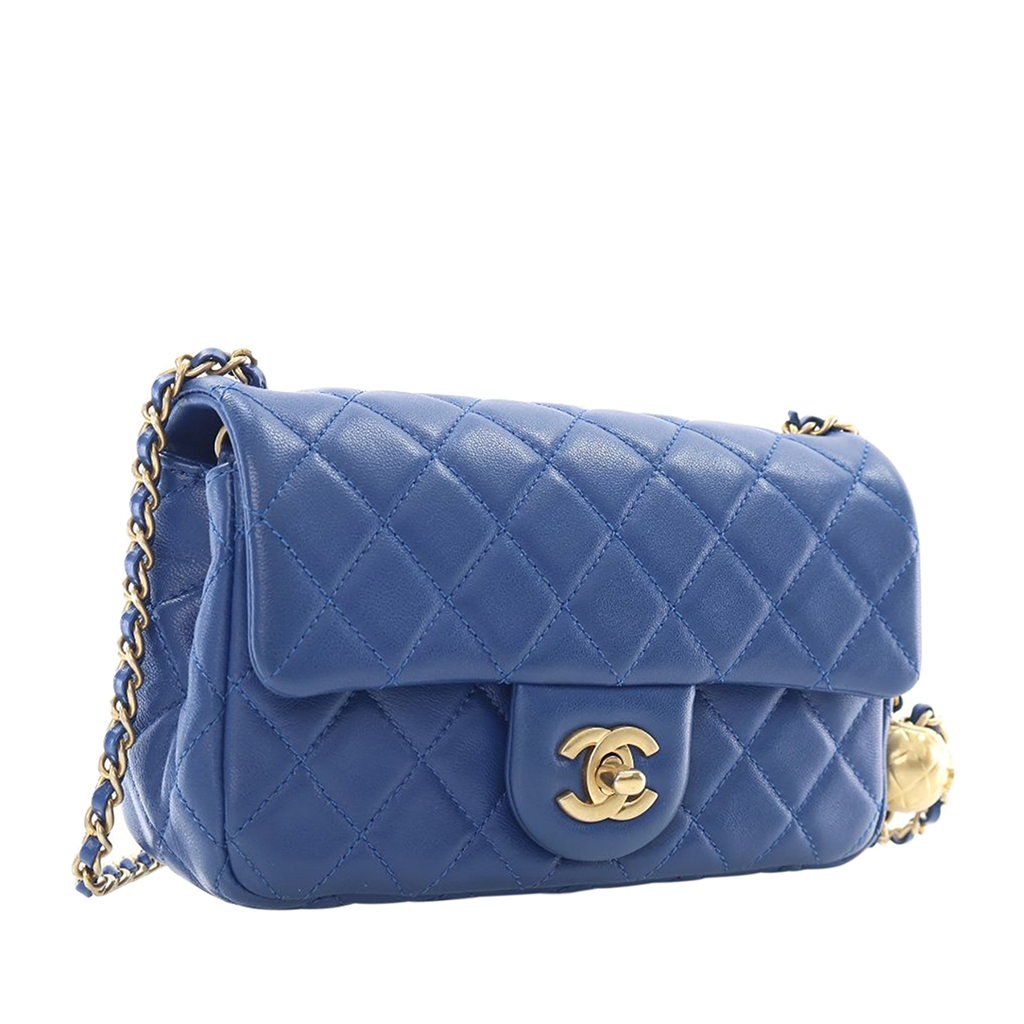 Chanel Blue Quilted Lambskin Pearl Crush Flap Bag Aged Gold Hardware, 2020The interior is lined in a gold leatherIncludes authenticity cardThis item is final sale
