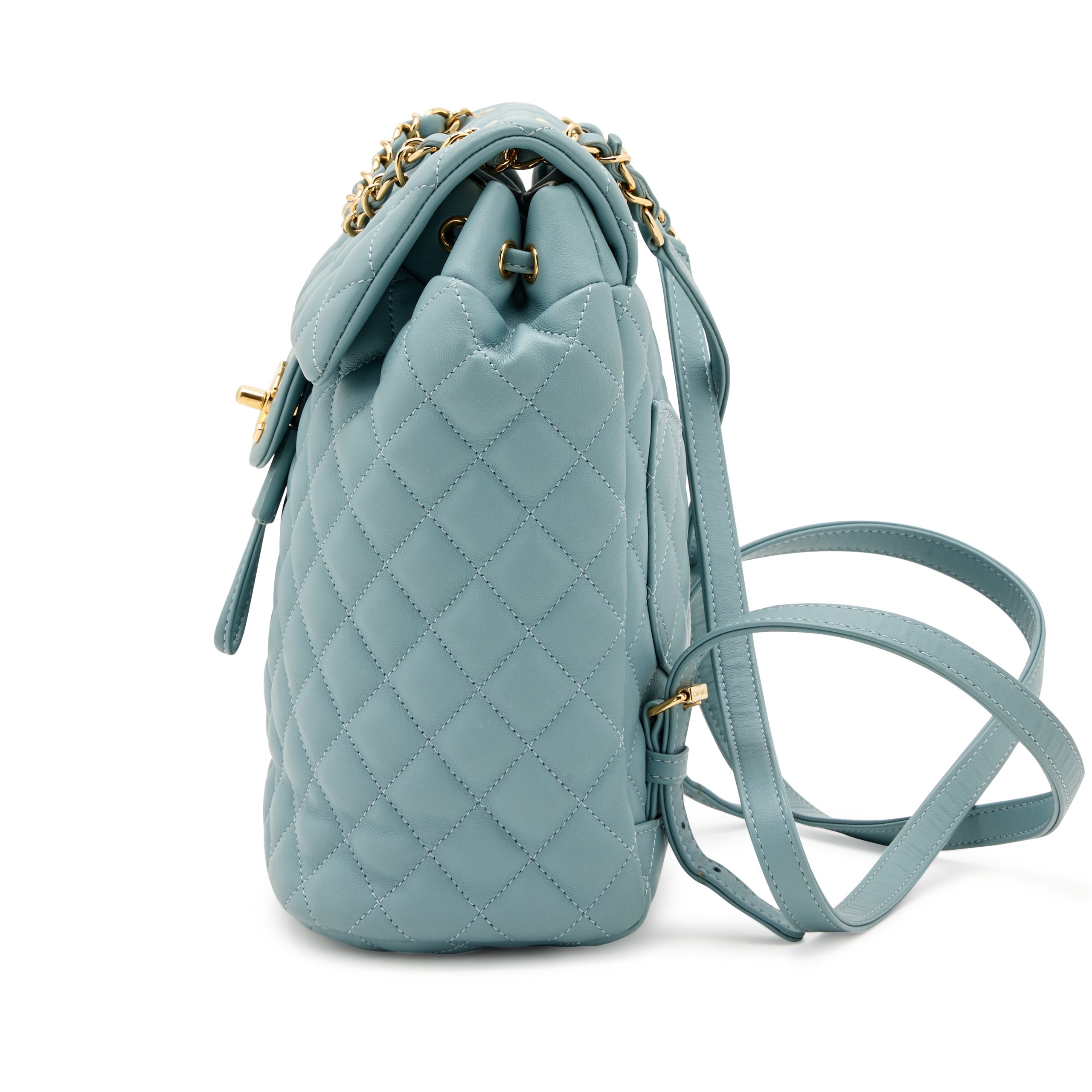 Chanel Blue Quilted Lambskin Small Urban Spirit Backpack Gold Hardware, 2018 Interior is lined in a tonal fabricIncludes box and dust bagThis item is final sale