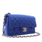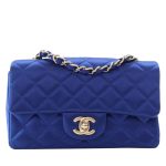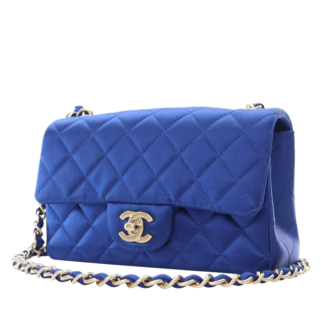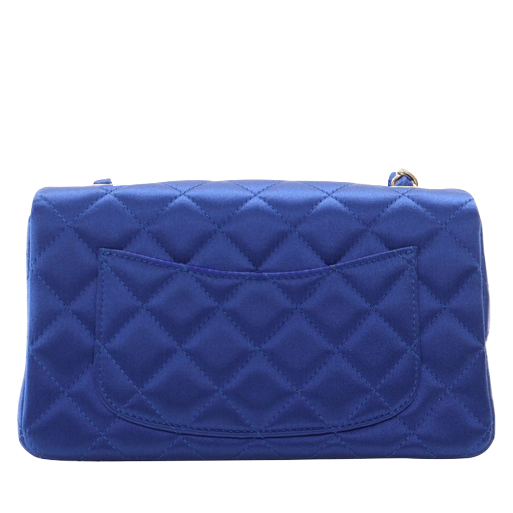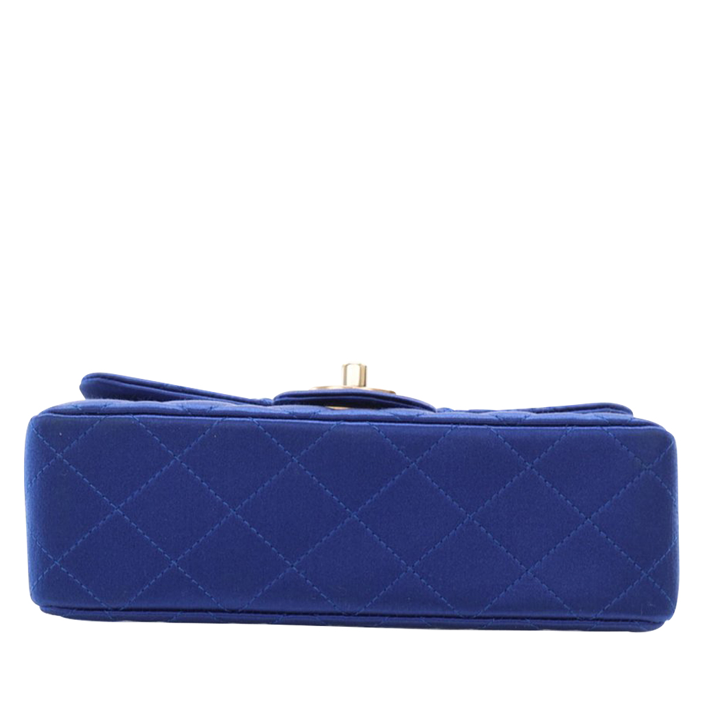 Chanel Blue Quilted Satin Mini Classic Rectangular Flap Bag Aged Gold Hardware, 2013-2014The interior is lined in a tonal leatherIncludes authenticity card, care booklet, and dust bagThis item is final sale