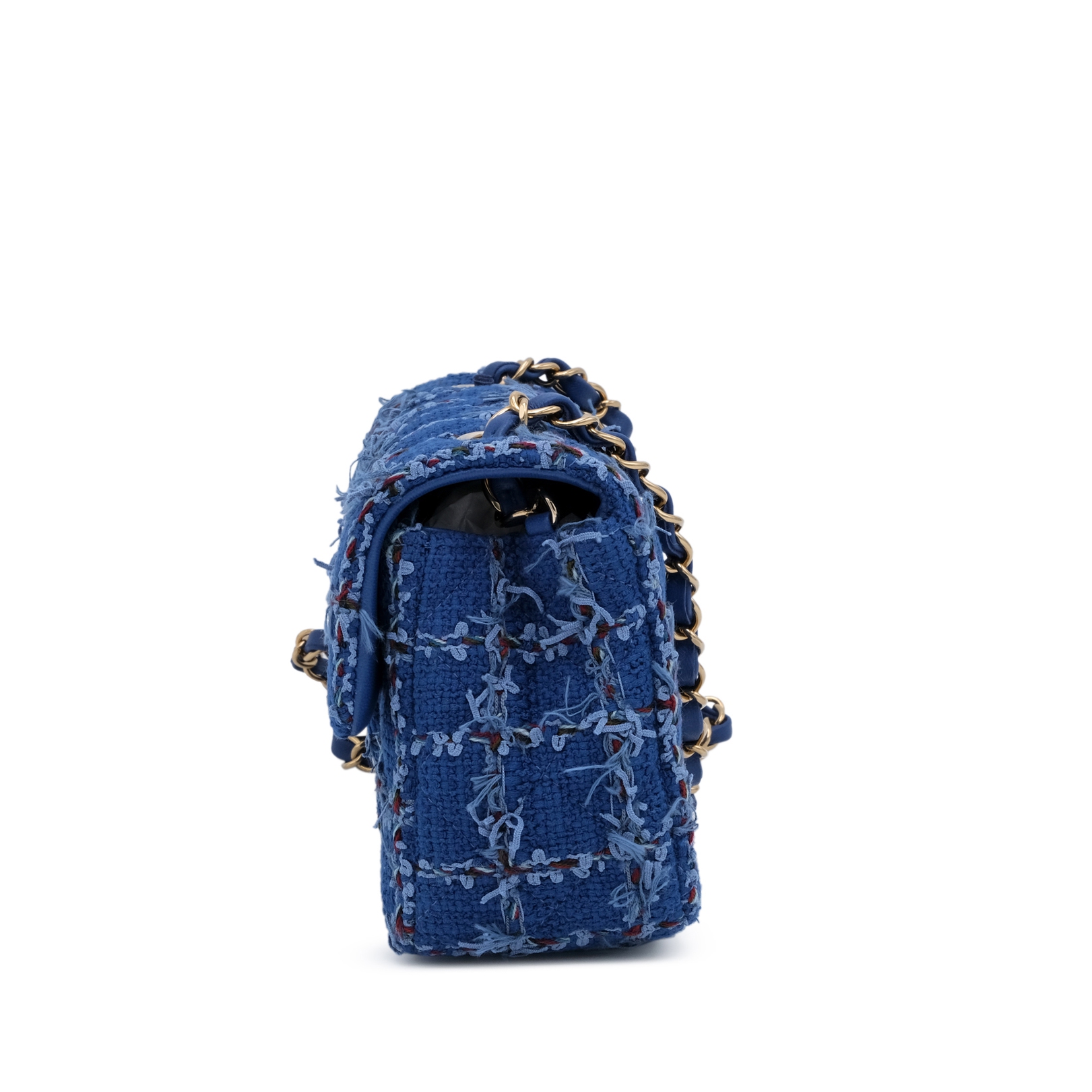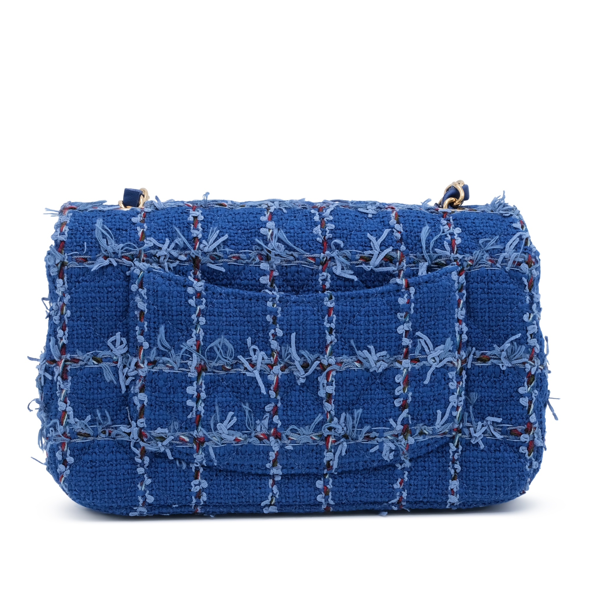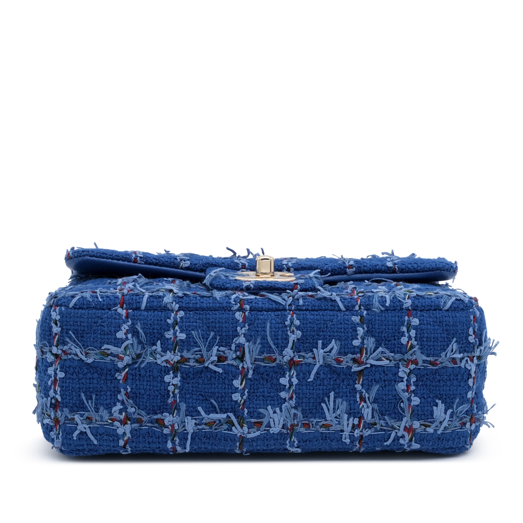 Blue Tweed Quilted Mini Flap Bag Gold Hardware, 2023
