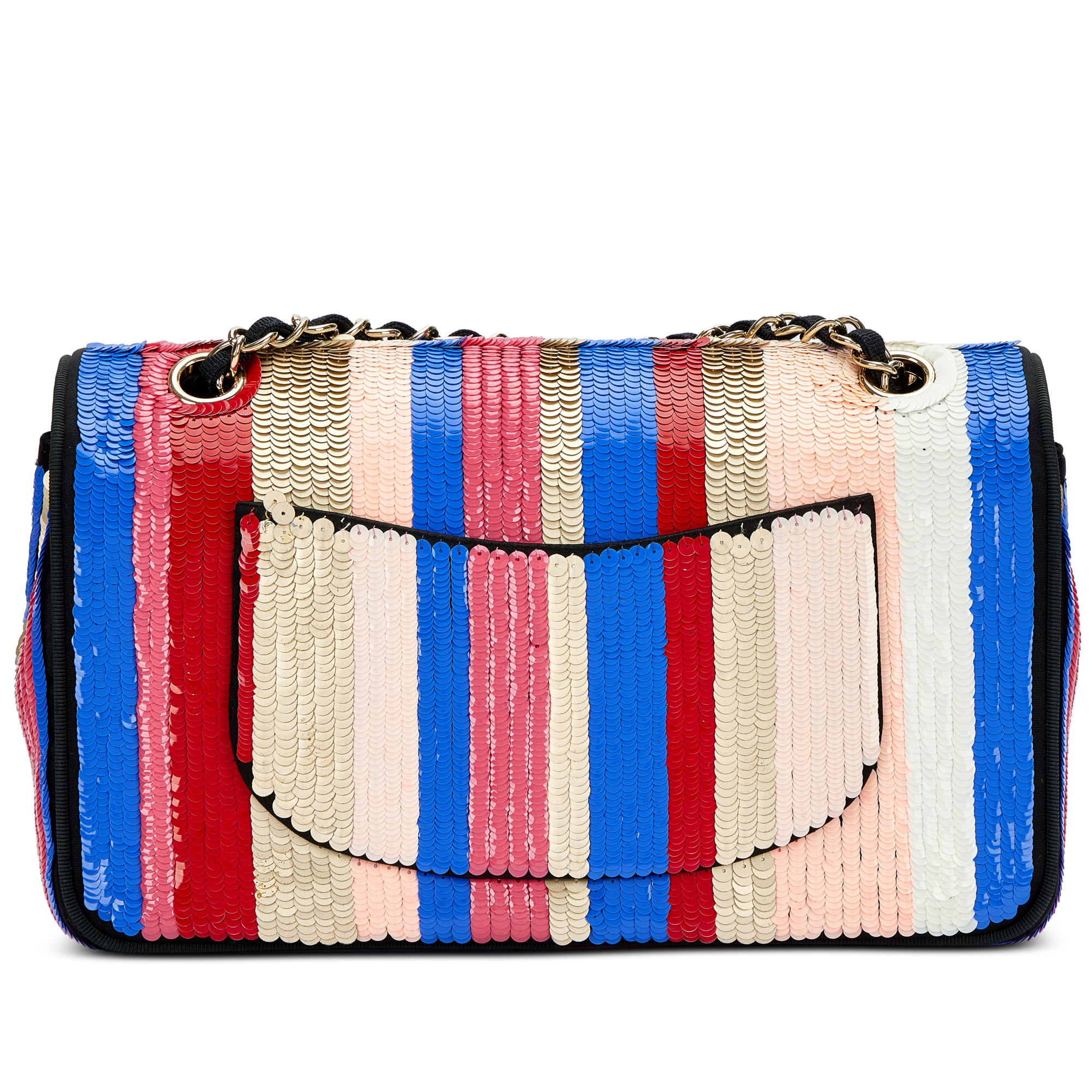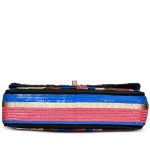 Blue, White, Red, Gold and Pink Sequin and Black Fabric Double Flap Bag Pale Gold Hardware, 2016
