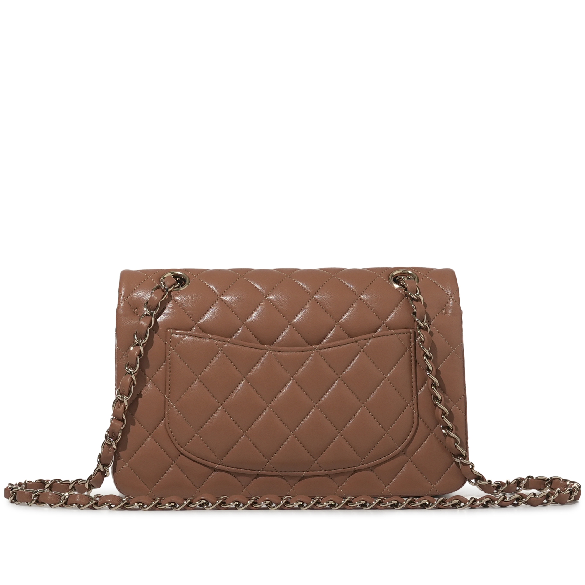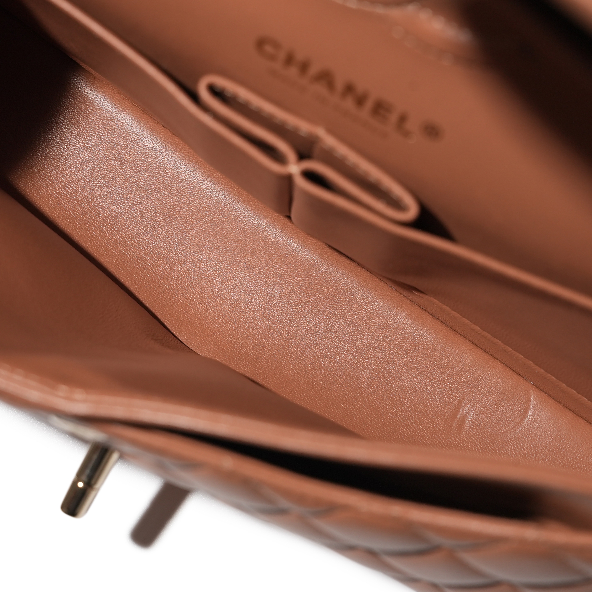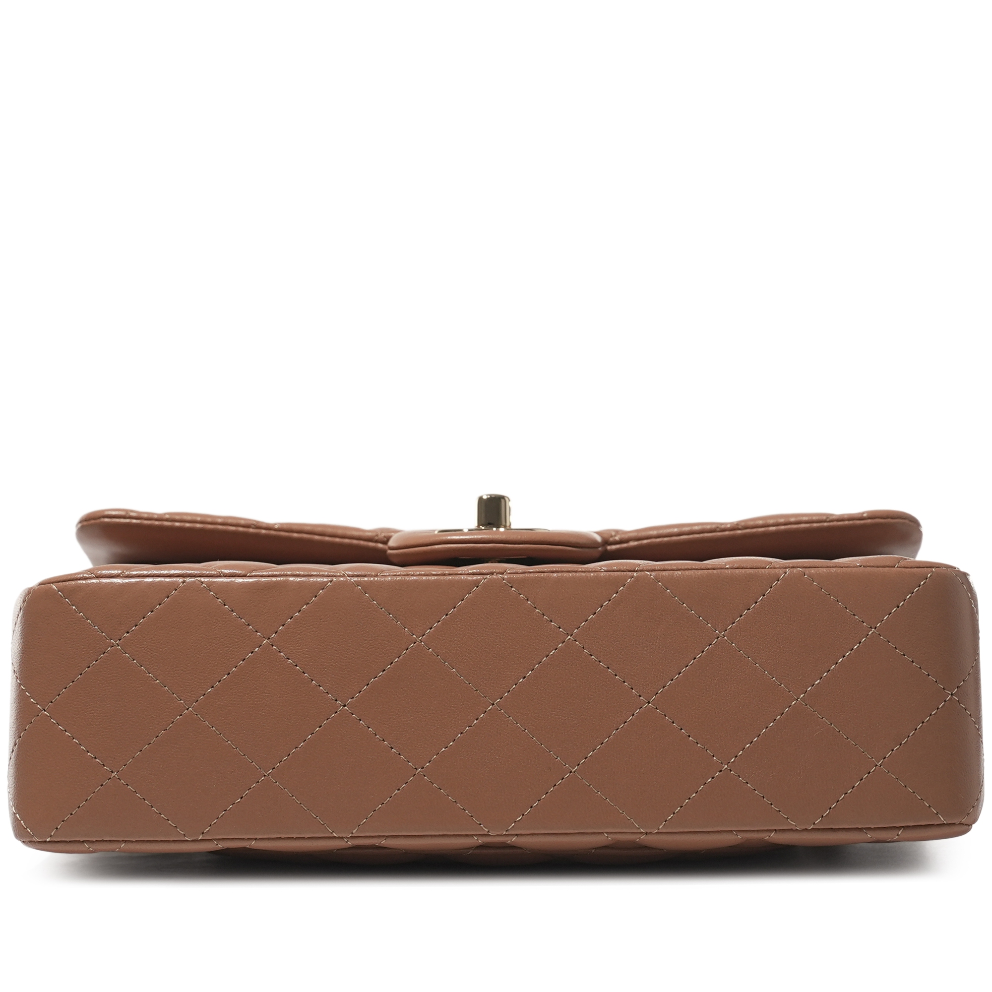Brown Quilted Lambskin Classic Double Flap Bag Pale Gold Hardware, 2021
