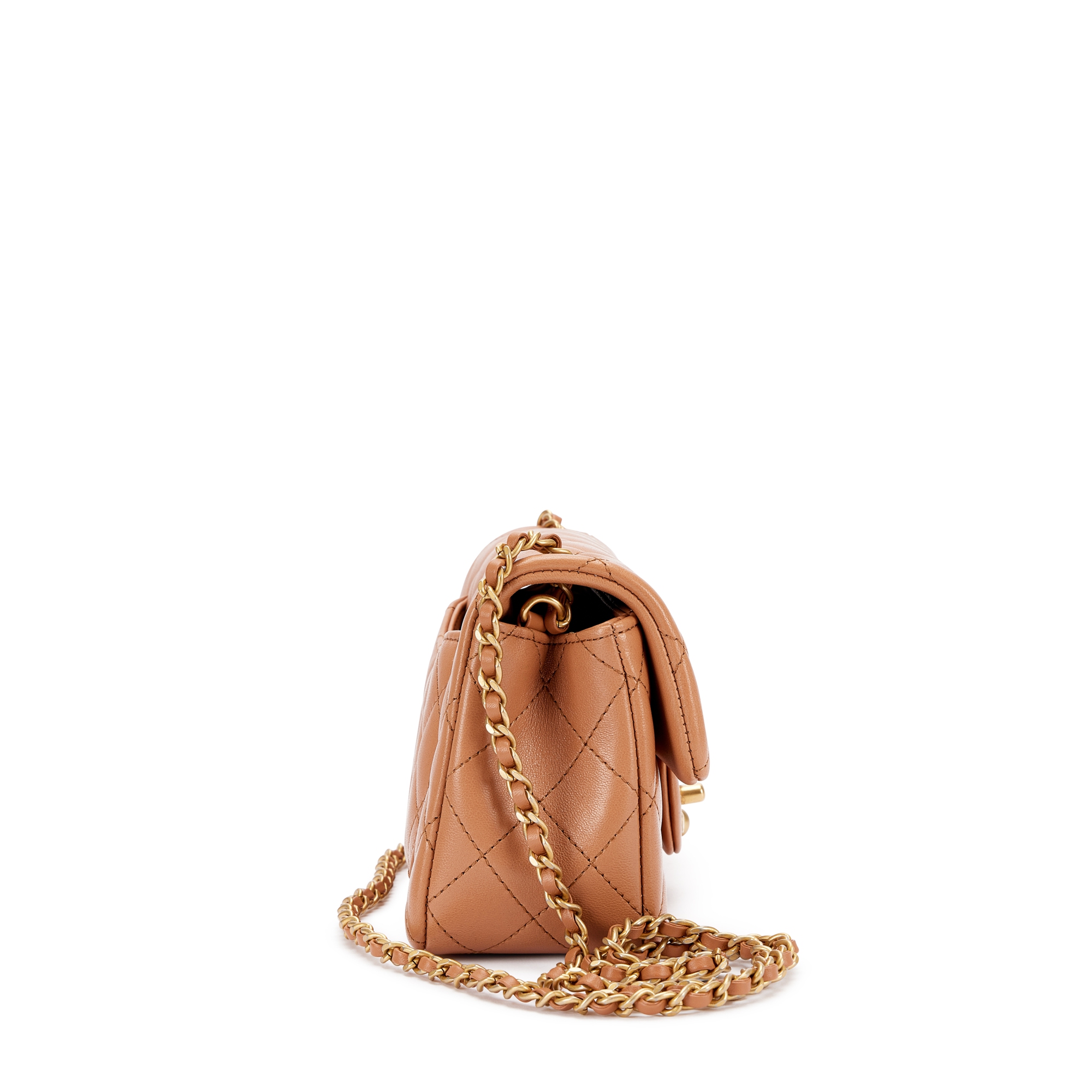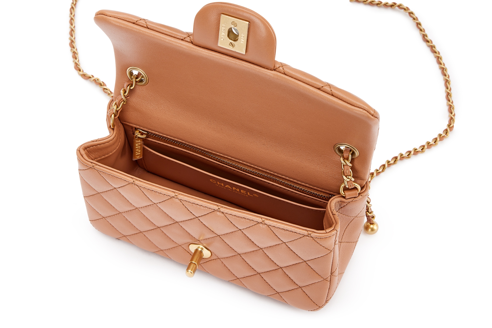Chanel Brown Quilted Lambskin Pearl Crush Flap Bag Aged Gold HardwareThe interior is lined in tonal leatherIncludes felt, dust bag and boxThis item is final sale