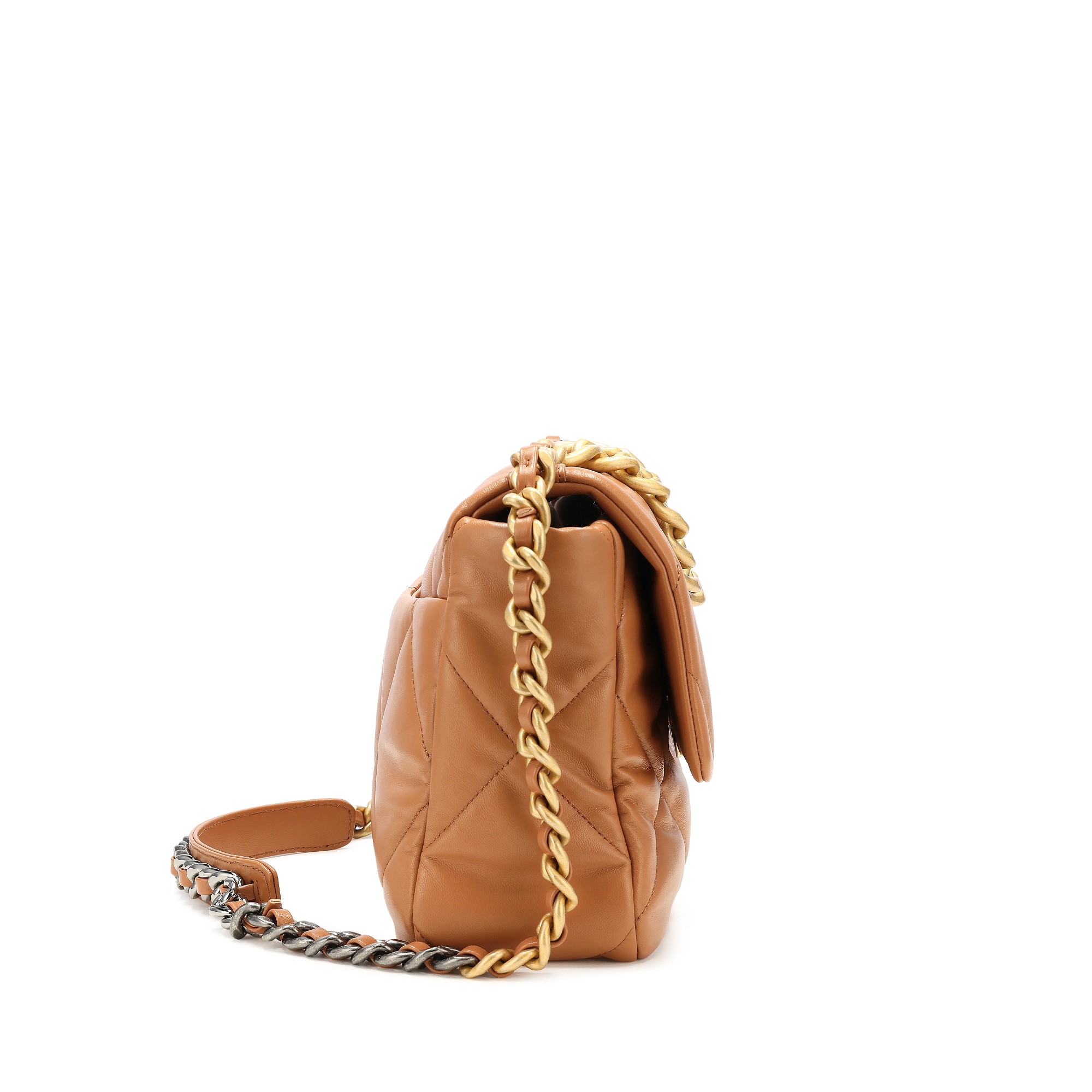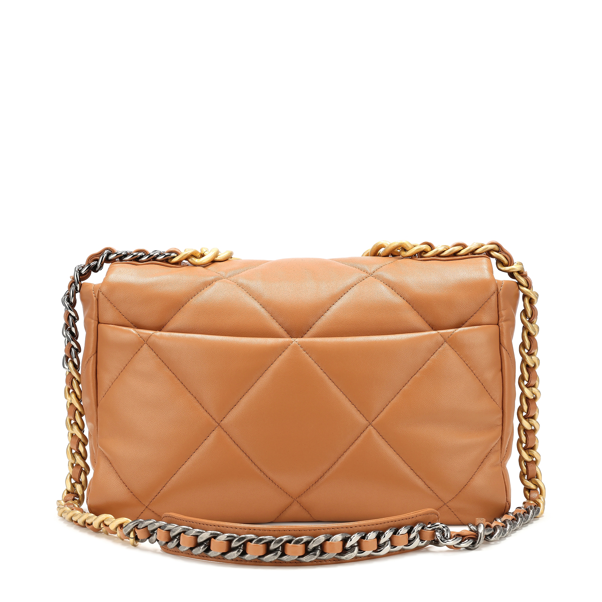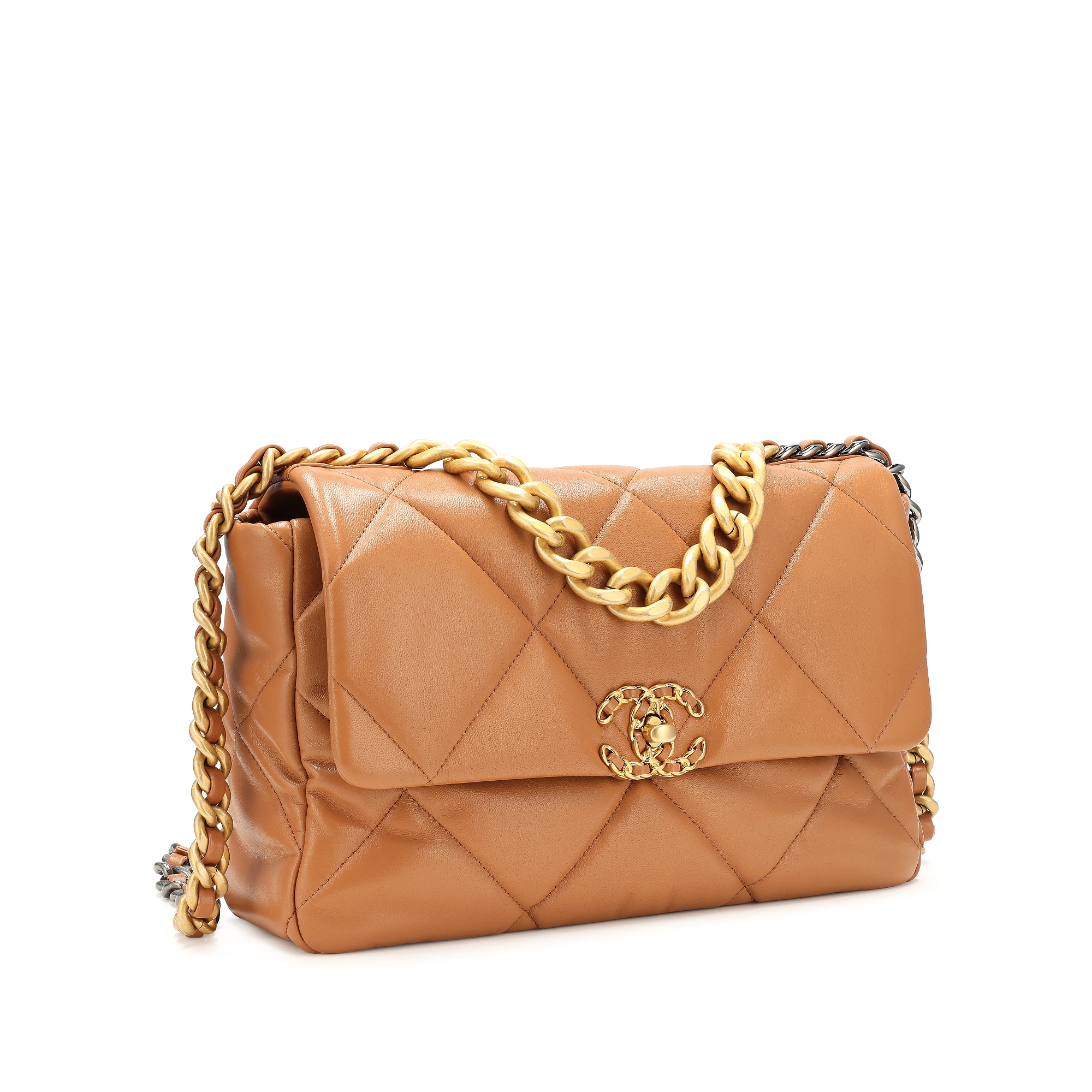 Chanel Caramel Quilted Lambskin Medium 19 Bag Gold and Silver Hardware, 2022This bag is lined in a tonal textile materialThis piece was featured during the 2022 autumn winter ready-to-wear collectionIncludes tag, felt, dustbag, care booklet and boxThis item is final sale