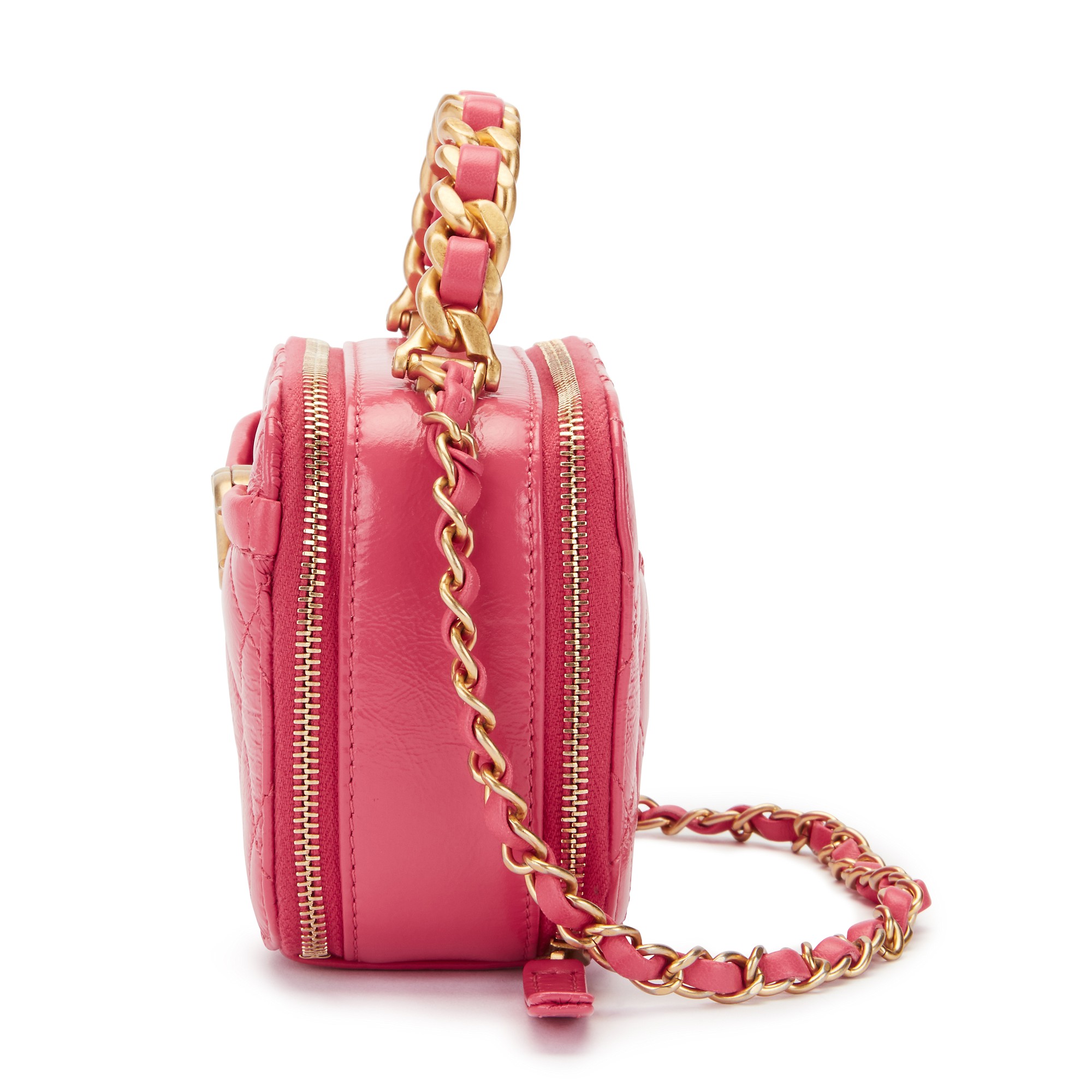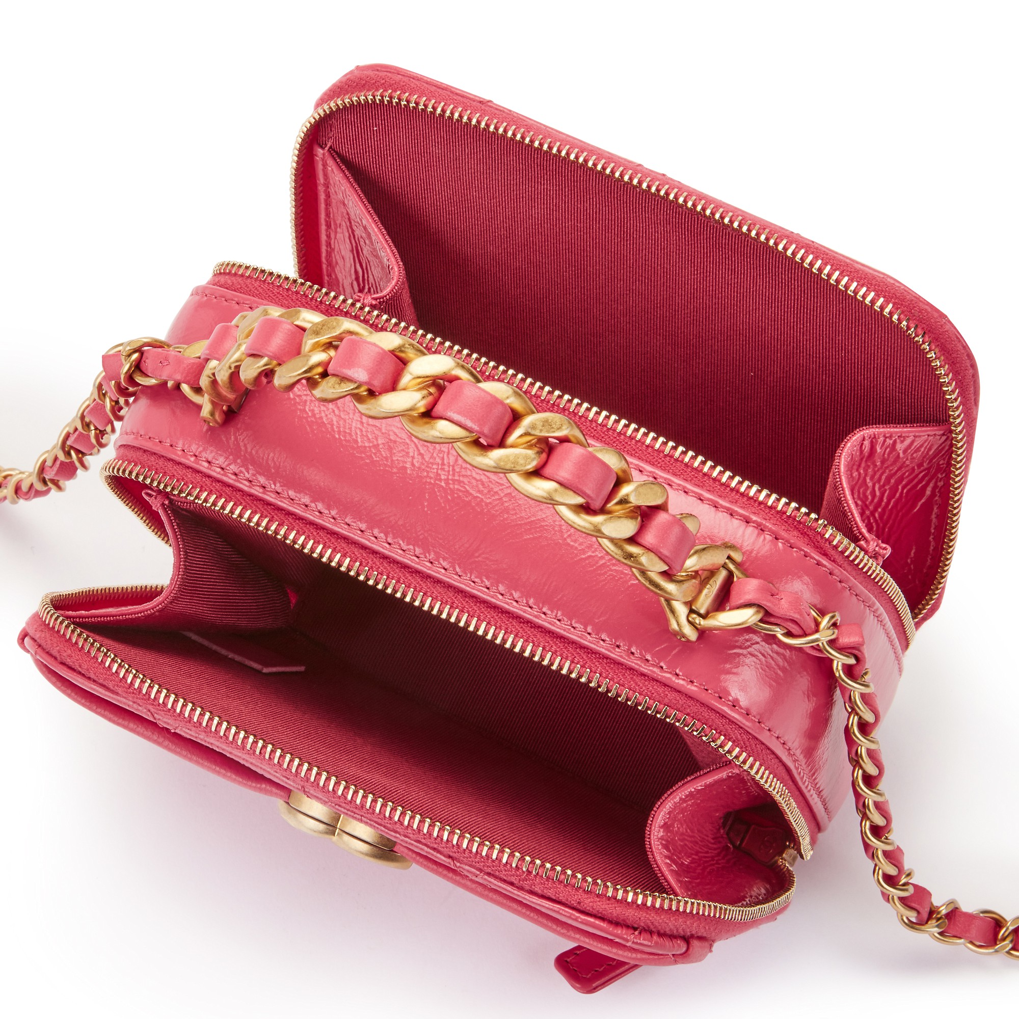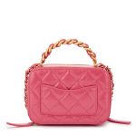 Chanel Pink Quilted Aged Glazed Calfskin Mini Vanity with Chain Gold Hardware, 2020