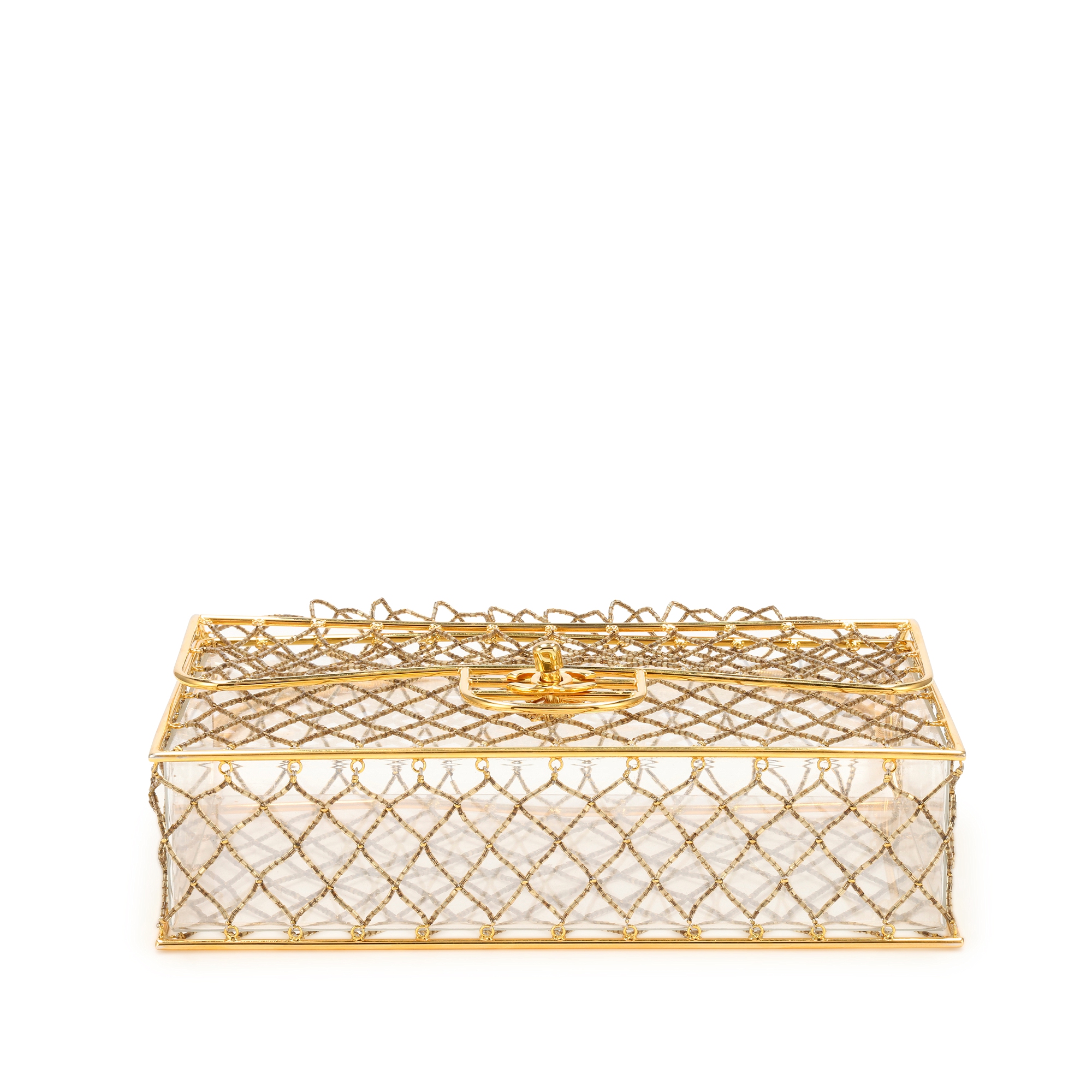 Clear Beaded Lucite Medium Cage Flap Gold Hardware, 1990s
