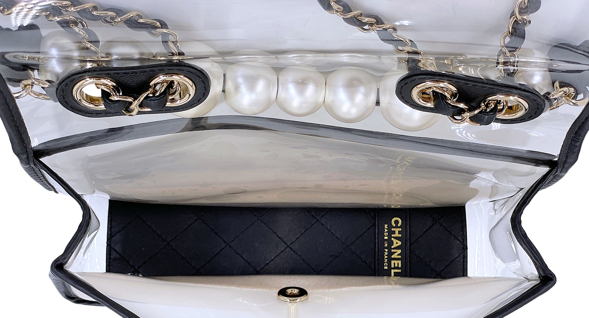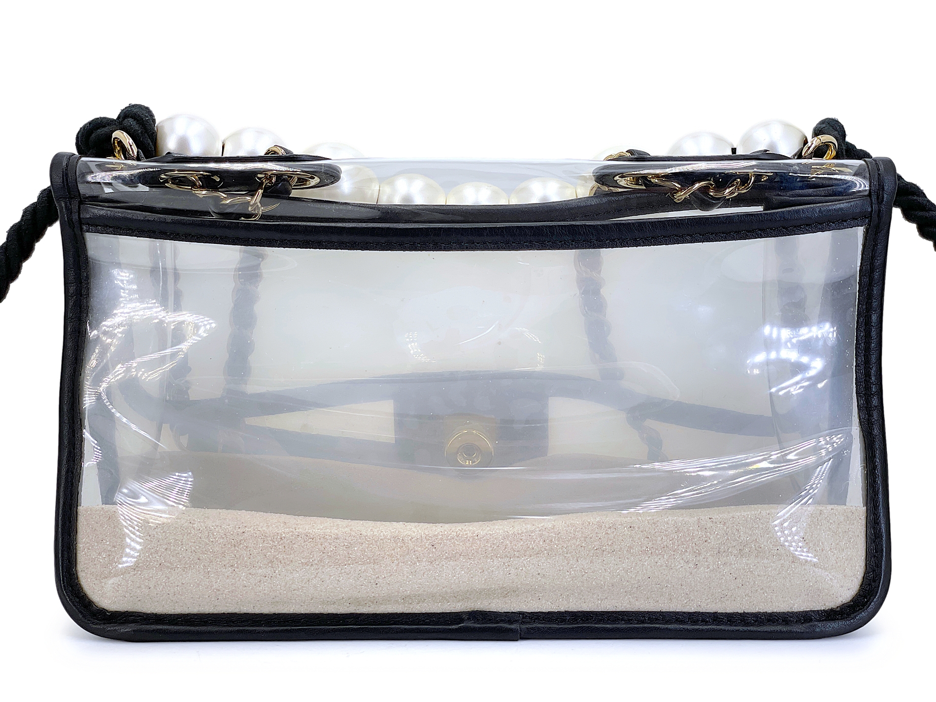 Chanel Clear PVC Lambskin Sand and Imitation Pearl By the Sea Flap Bag Gold Hardware, 2019The interior is unlinedIncludes dust bagThis item is final sale