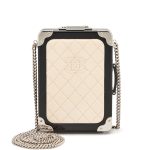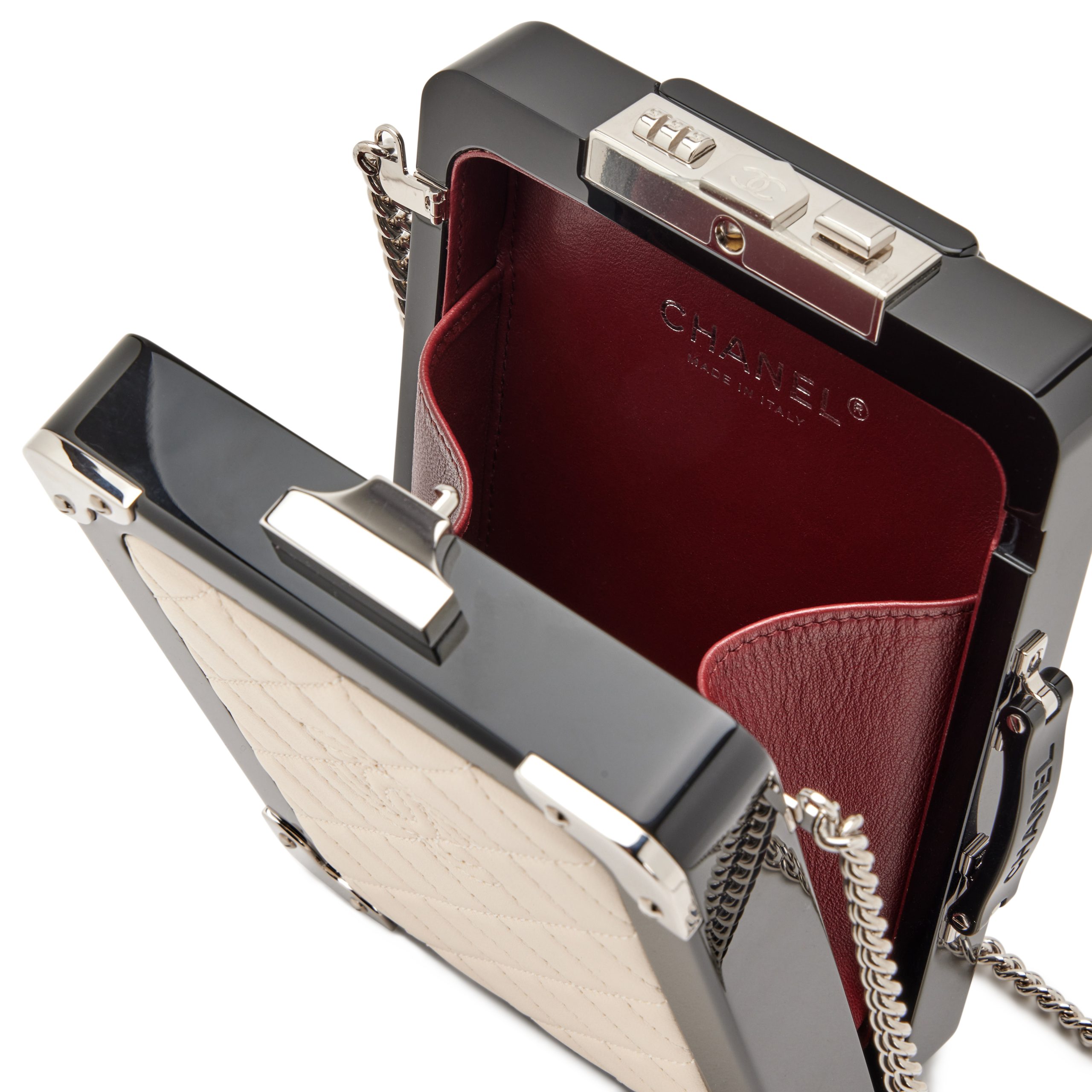 Cream White Quilted Lambskin and Black Plexiglass Evening In The Air Mini Trolley Minaudiere Clutch Silver Hardware, 2016