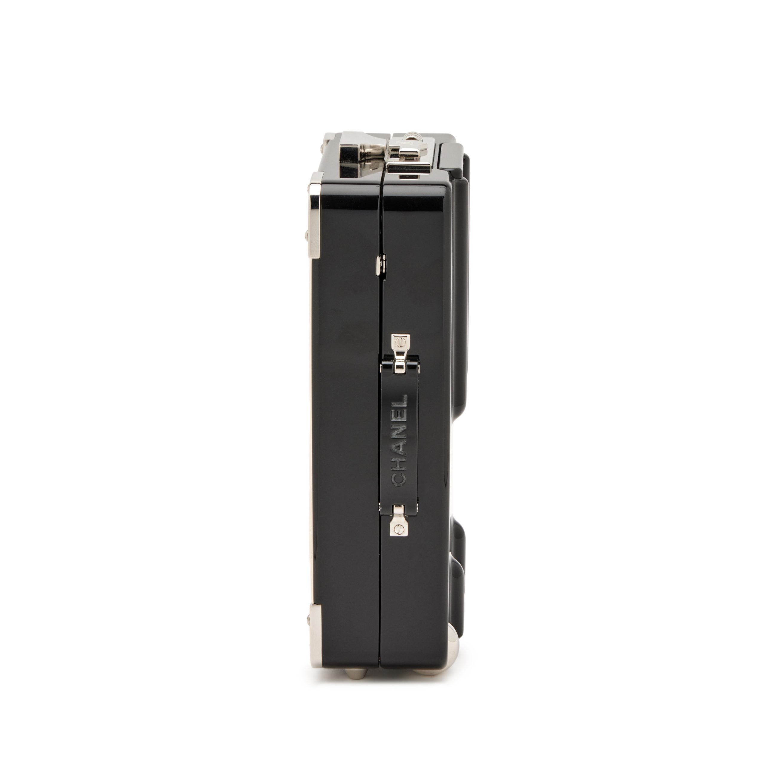 Chanel Cream White Quilted Lambskin and Black Plexiglass Evening In The Air Mini Trolley Minaudiere Clutch Silver Hardware, 2016The interior is lined in a burgundy leatherIncludes authenticity card, ribbon, dust bag, and boxThis item is final sale