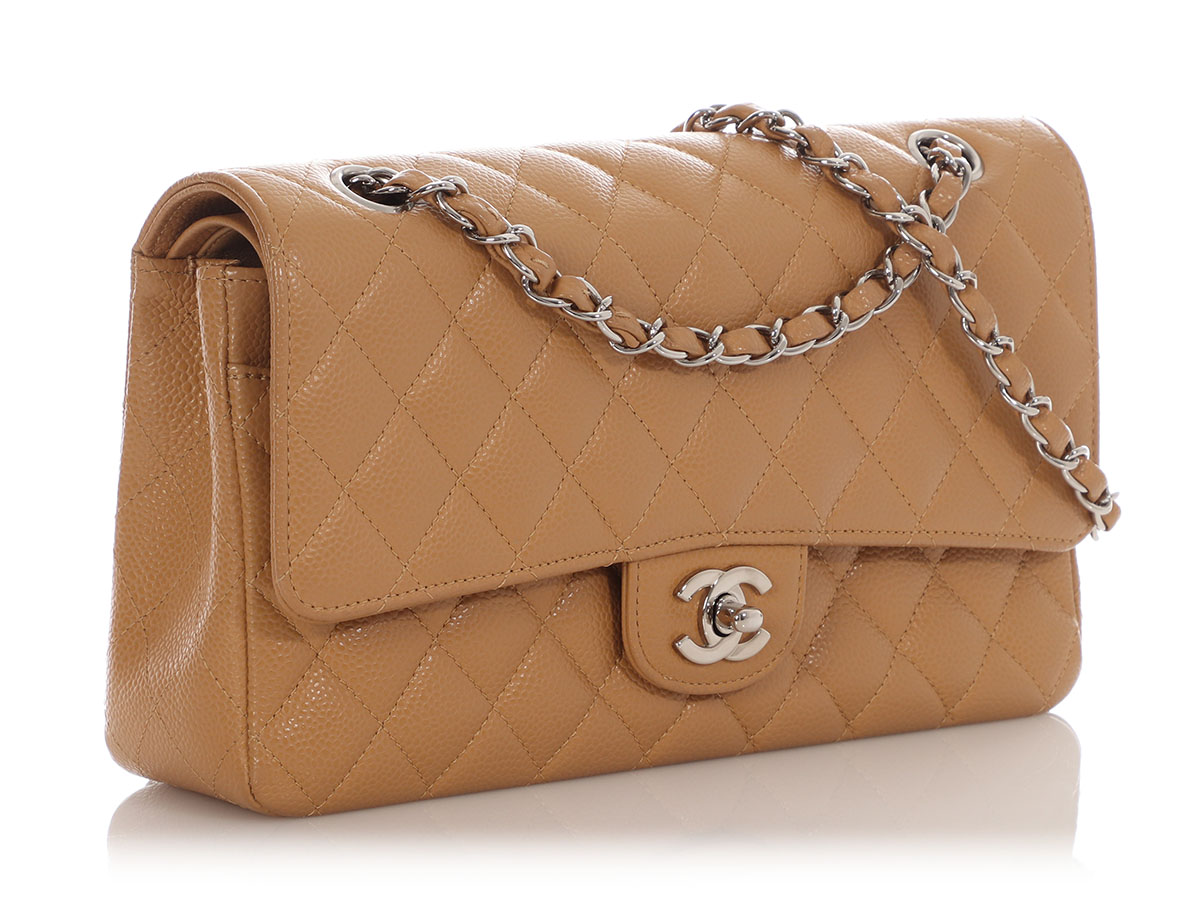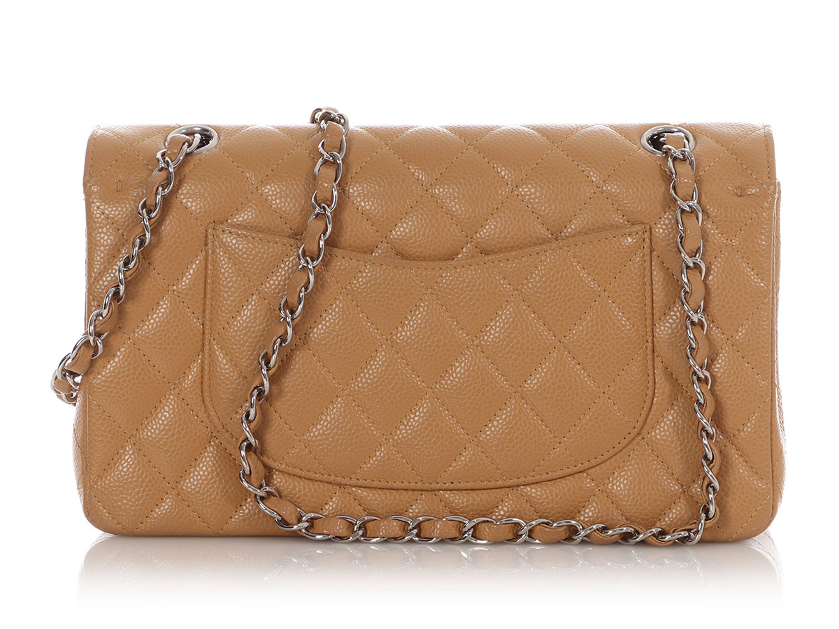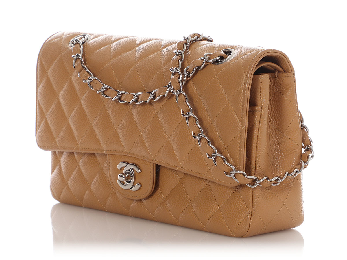 Chanel Dark Beige Quilted Caviar Medium Classic Double Flap Bag Ruthenium Hardware, 2006-2008The interior is lined in a tonal leatherIncludes authenticity card and dust bagThis item is final sale