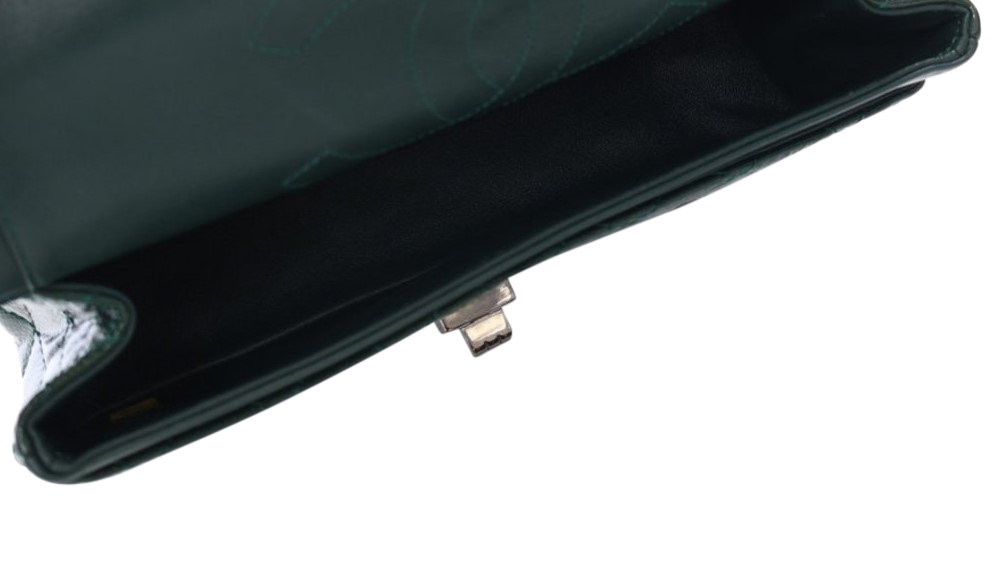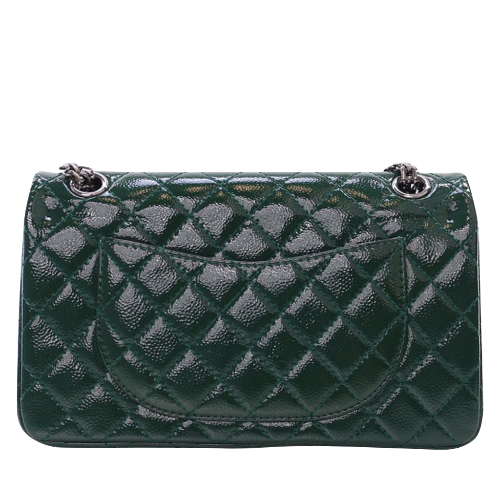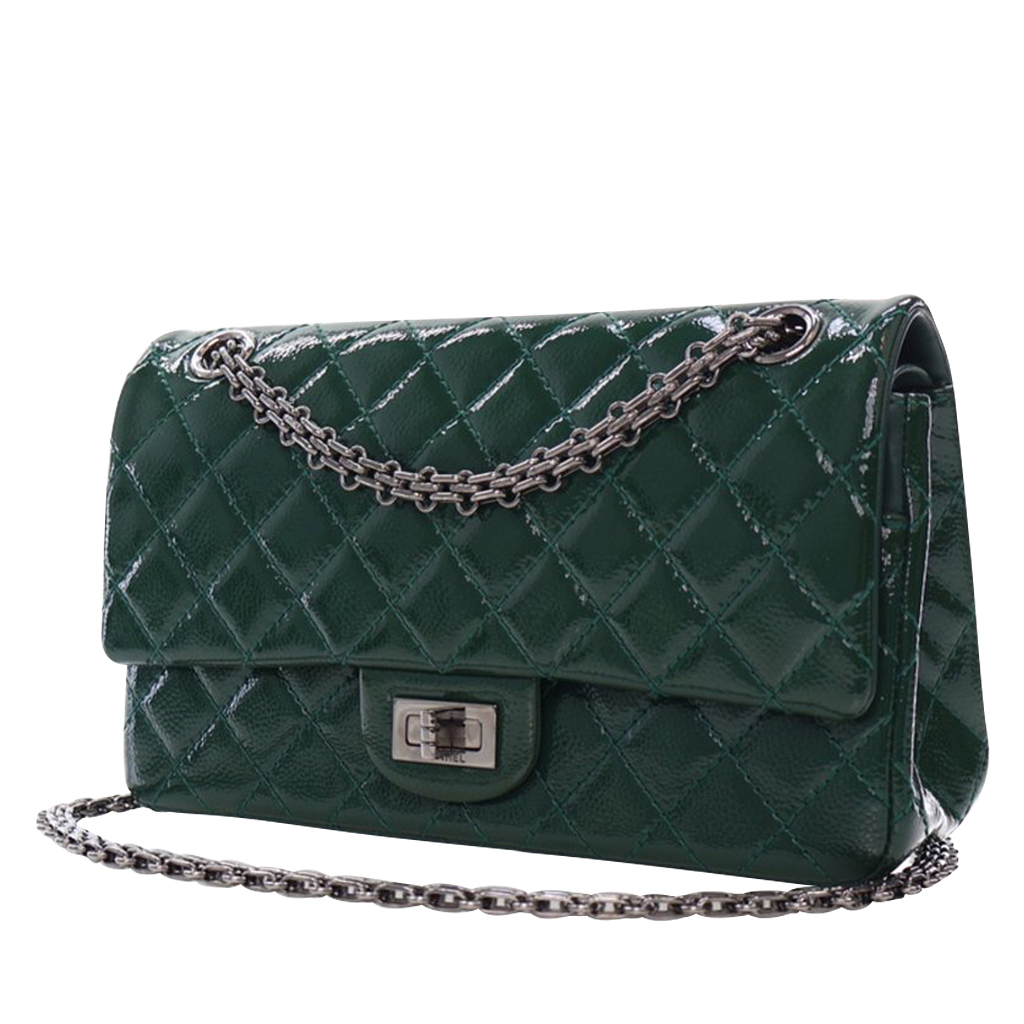 Chanel Dark Green Quilted Patent 2.55 Reissue 225 Flap Bag Ruthenium Hardware, 2014-2015The interior is lined in a tonal leatherThis item is final sale