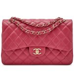 Dark Pink Quilted Caviar Jumbo Classic Double Flap Bag Gold Hardware, 2022