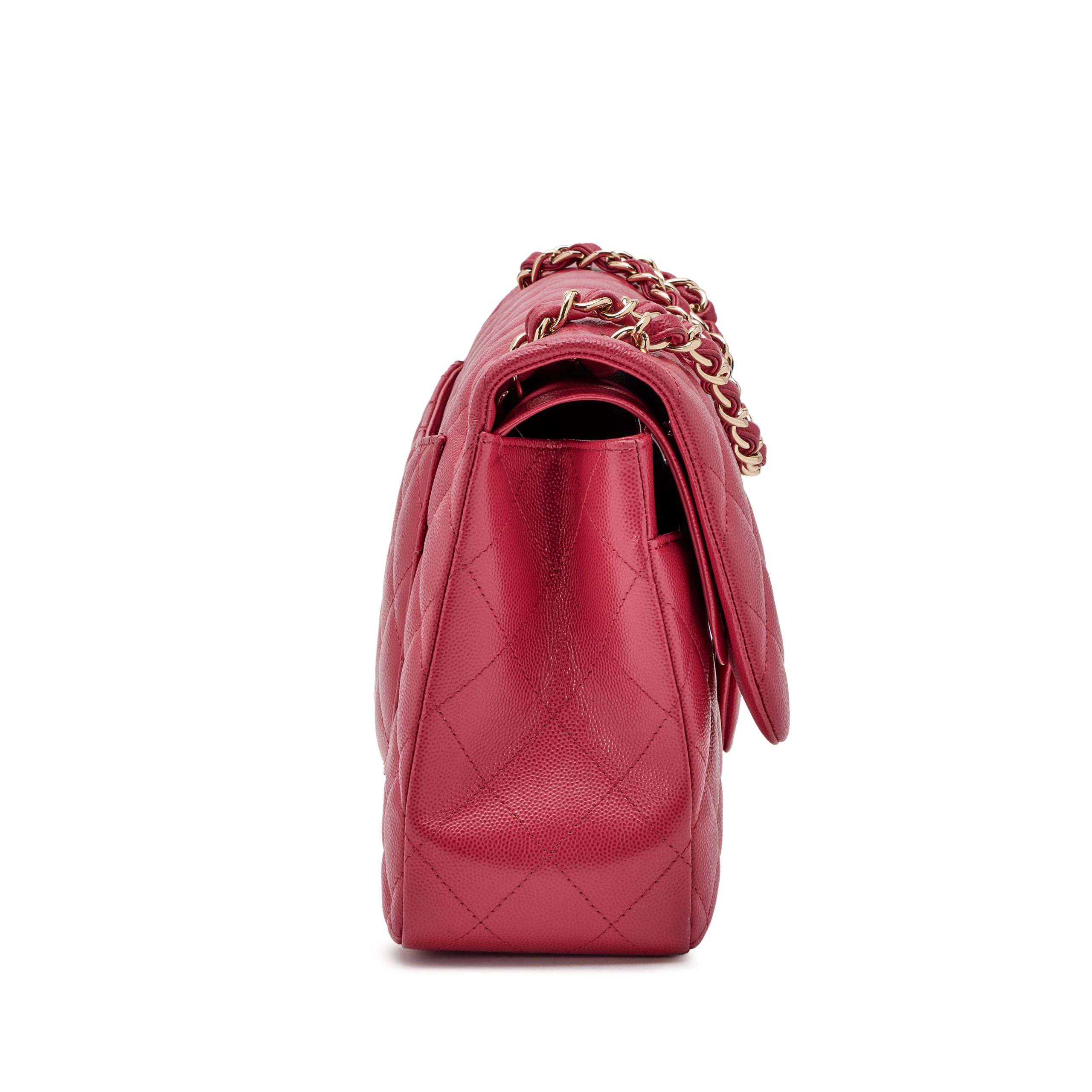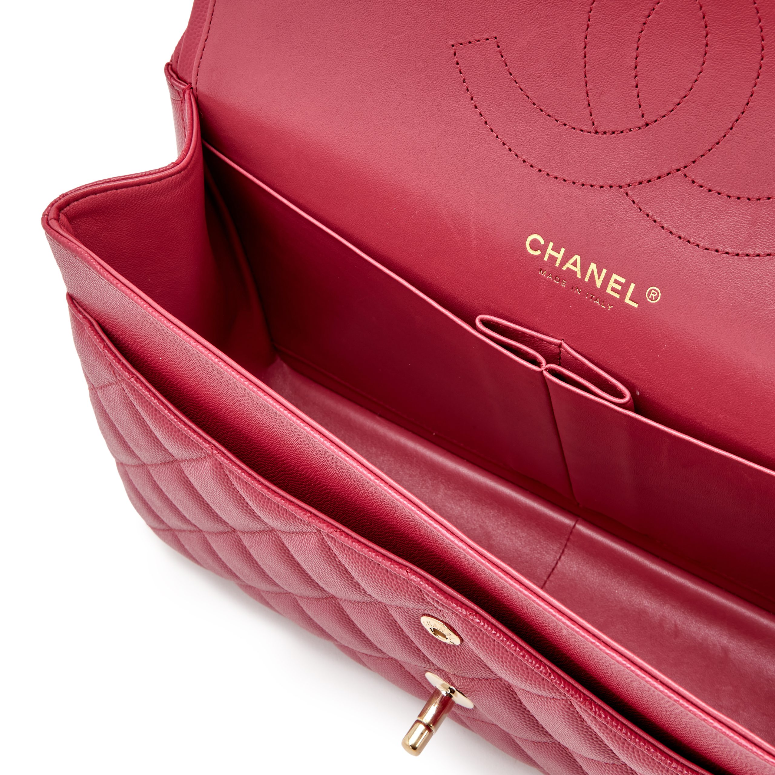 Chanel Dark Pink Quilted Caviar Jumbo Classic Double Flap Bag Gold Hardware, 2022The interior is lined in a tonal leatherIncludes information booklet, felt protector, dust bag, and boxThis item is final sale