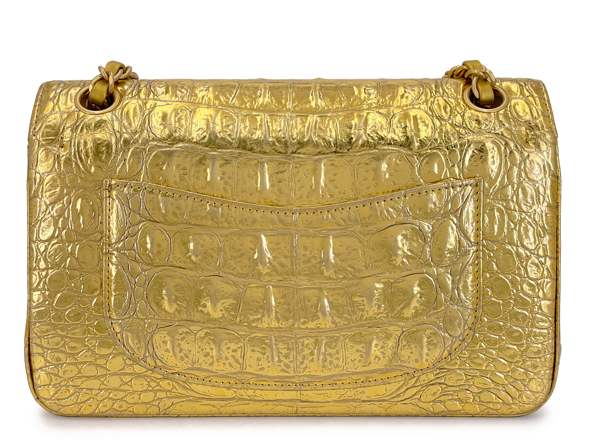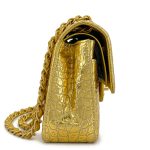 Gold Crocodile Embossed Calfskin Egyptian Small Classic Double Flap Bag Gold Hardware, 2019