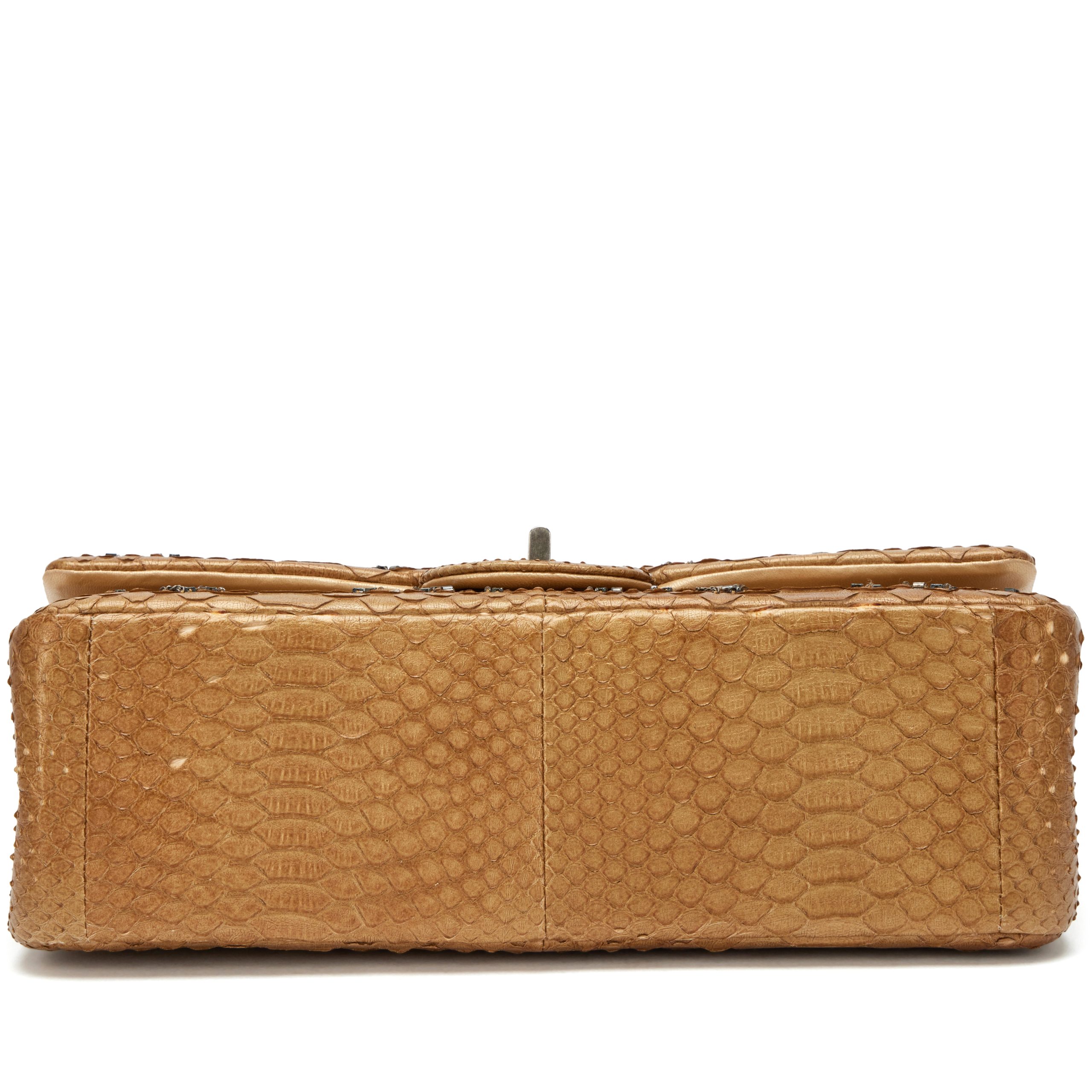 Chanel Gold Python Beaded and Chain Embellished Paris-Byzance 225 Reissue Double Flap Bag Ruthenium Hardware, 2011The interior is lined in a tonal leatherIncludes information booklet and dust bagThis item is final sale